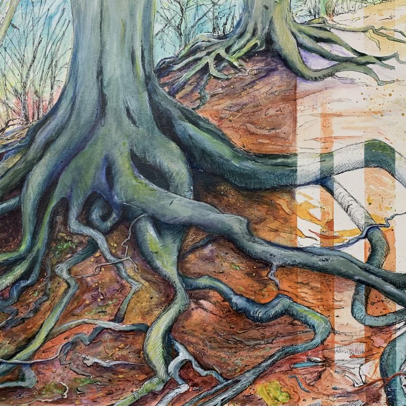 “Have you ever had that awful feeling of being lost, stuck, trapped in one sense or another? In the past I have felt like this, and with this painting I wanted to create a sense of release, of freedom, of letting go and moving on. Of being able to finally take a big deep breath in and out and tell myself I am safe. The linear movement of the the paint reflects moving forward, keeping on going no matter how hard it may seem at the time. Keep inching on forward. Keep breathing.”