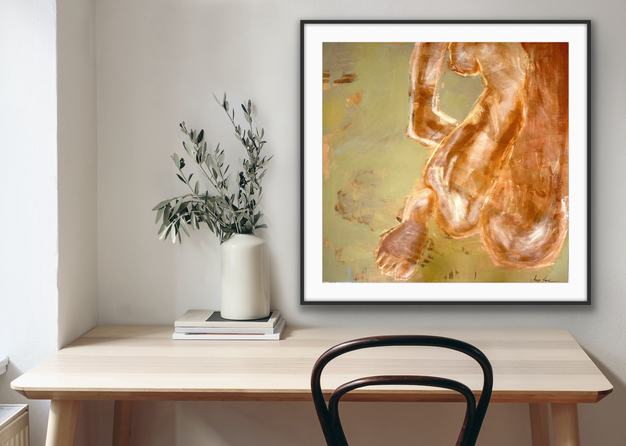 The Body on canvas encapsulates a poignant and intimate moment, inviting the viewer into the private sanctuary of solitude. “Alone in My Room” is an evocative piece that captures the vulnerability and raw beauty of the human form in an earthy and subdued palette. She is at peace with her body , who she is and is able to celebrate herself in all her power.