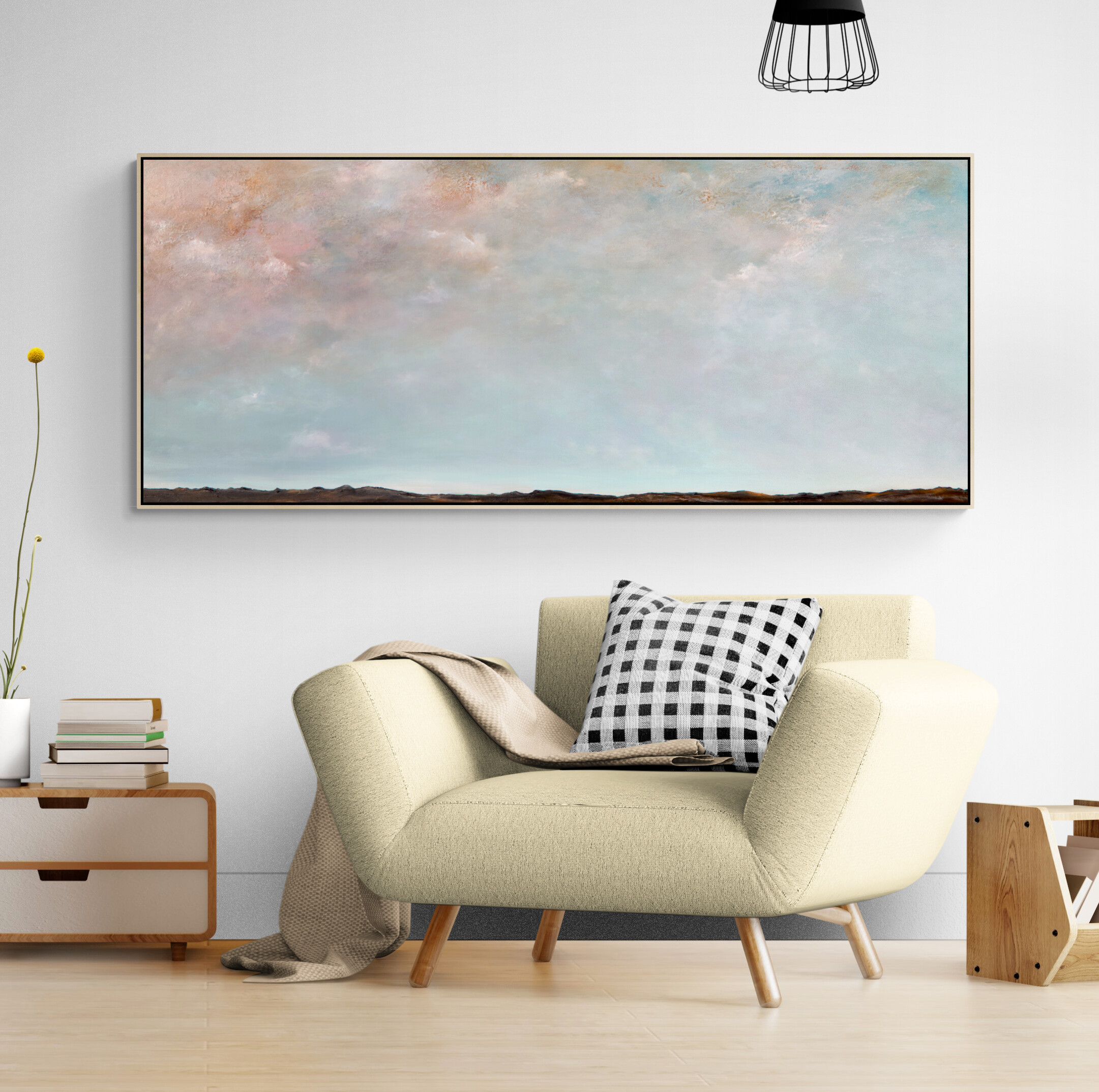 Alone With The Memory by Tania Chanter  is inspired by the beautiful Australian landscape and the changes of light and mood throughout the day. Tania’s hope is that this painting brings a sense of calm to the room where it lives, and that it makes the people who enter the room feel as though a part of nature is right there with them.