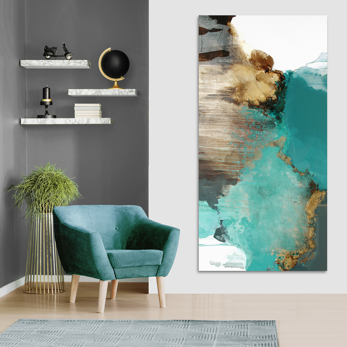 Alta Vista is very textured and is a combination of teals, grey and brown with a touch of gold. The painting extends around the 3.8cm sides of the canvas so it’s ready to hang. This painting can be hung vertically or horizontally. On purchase please message me to let me know which way you would like to hang Alta Vista so I can sign in the correct orientation or I can sign on the back only, if you prefer.