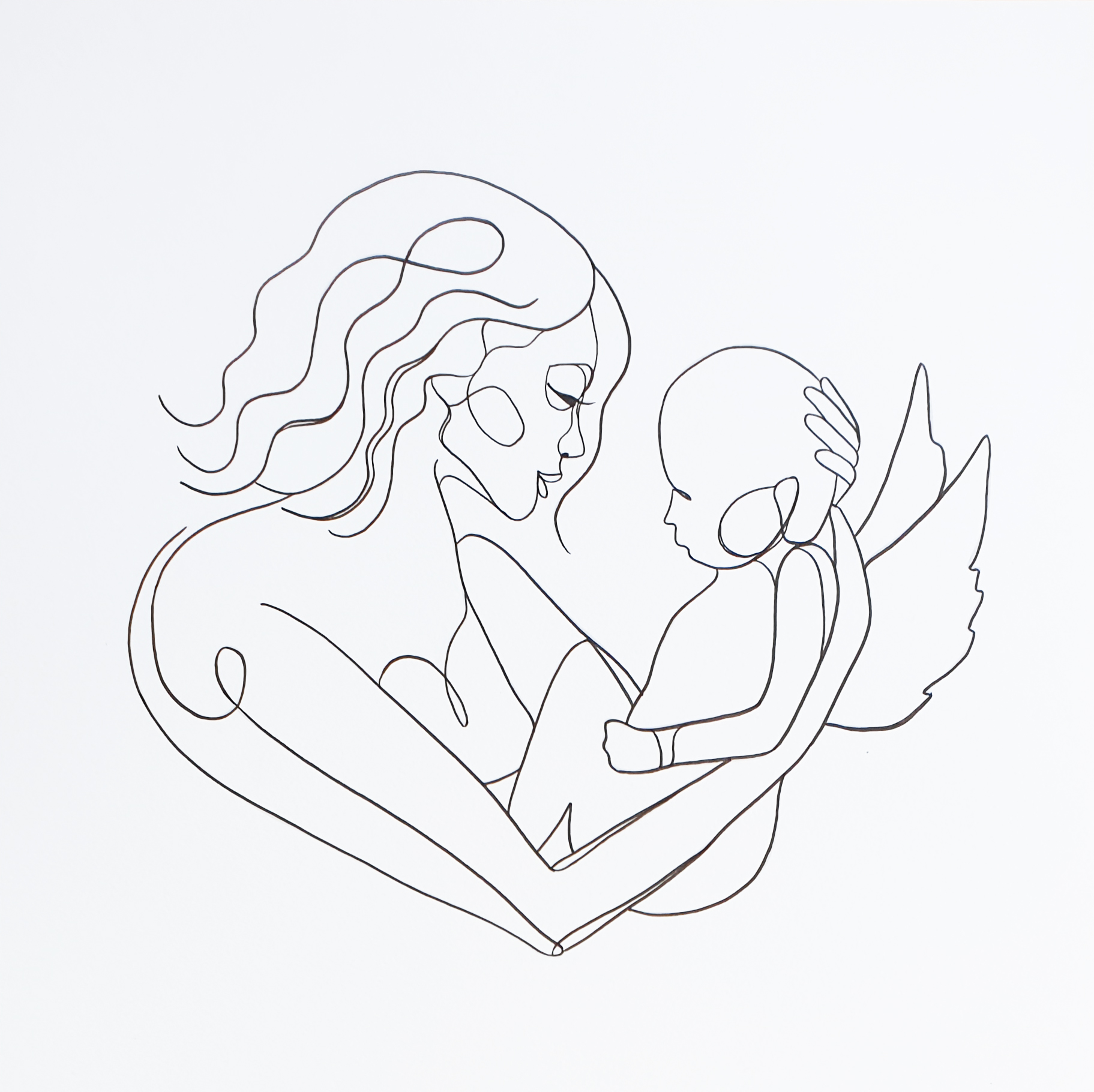 “Always my Angel” by Leni Kae – original line art drawing by Sydney artist and illustrator Leni Kae (c). Featuring a line drawing of woman holding a baby. A beautiful and unique gift to celebrate the birth of a new little angel, or serving as a memory for an angel-baby loss or miscarriage. Works come with a certificate of authenticity. Gift card provided for gift purchases.