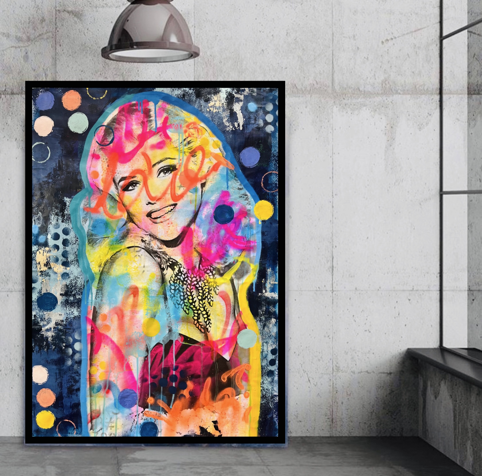 This Original Artwork takes it cues from Warhol, Street Graffiti and dips into a 1980’s punchy fluro palete.