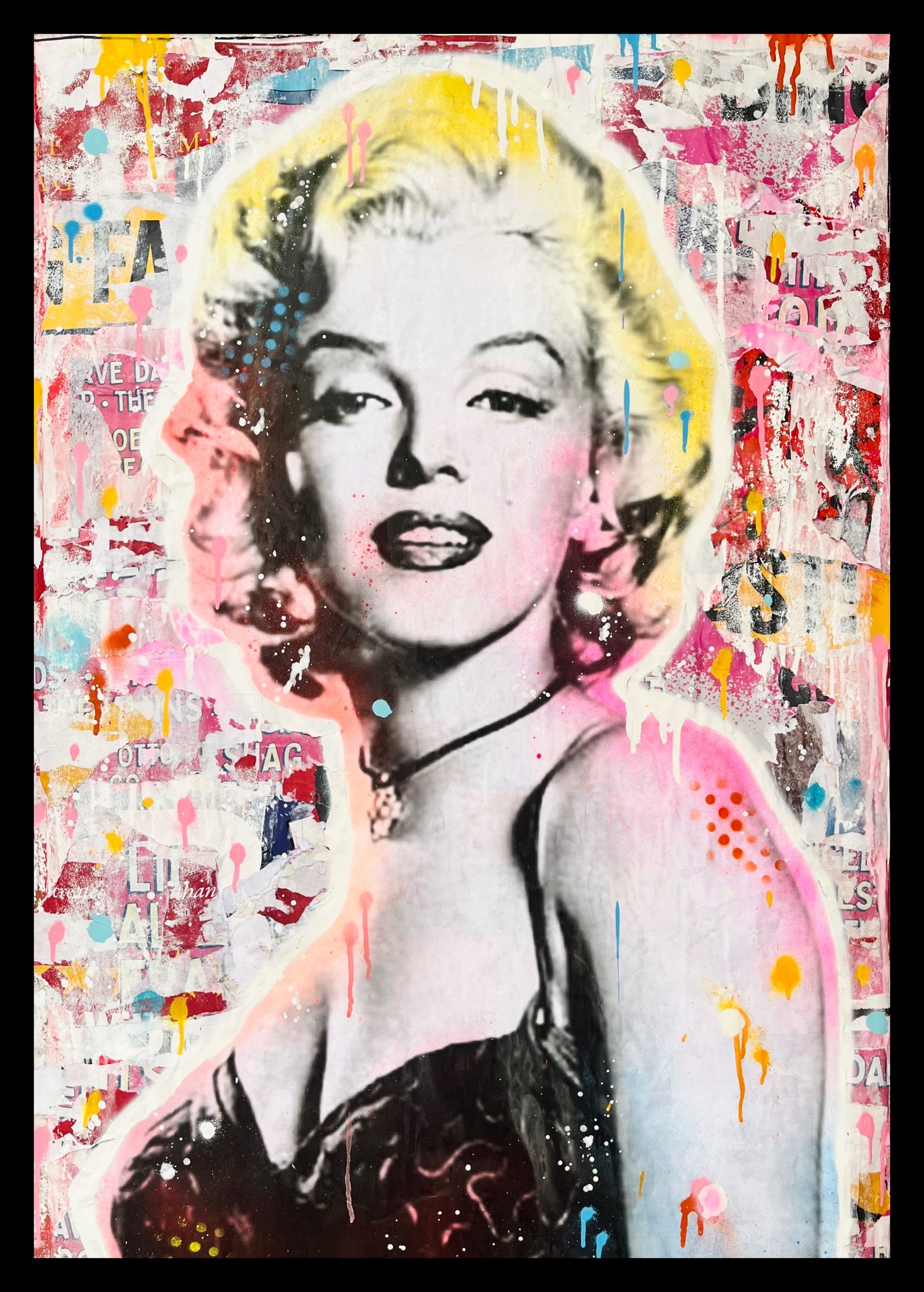The main Image of Marilyn was added and then further overlaid with lots of layers of paint and street posters to give a worn rustic appearance.