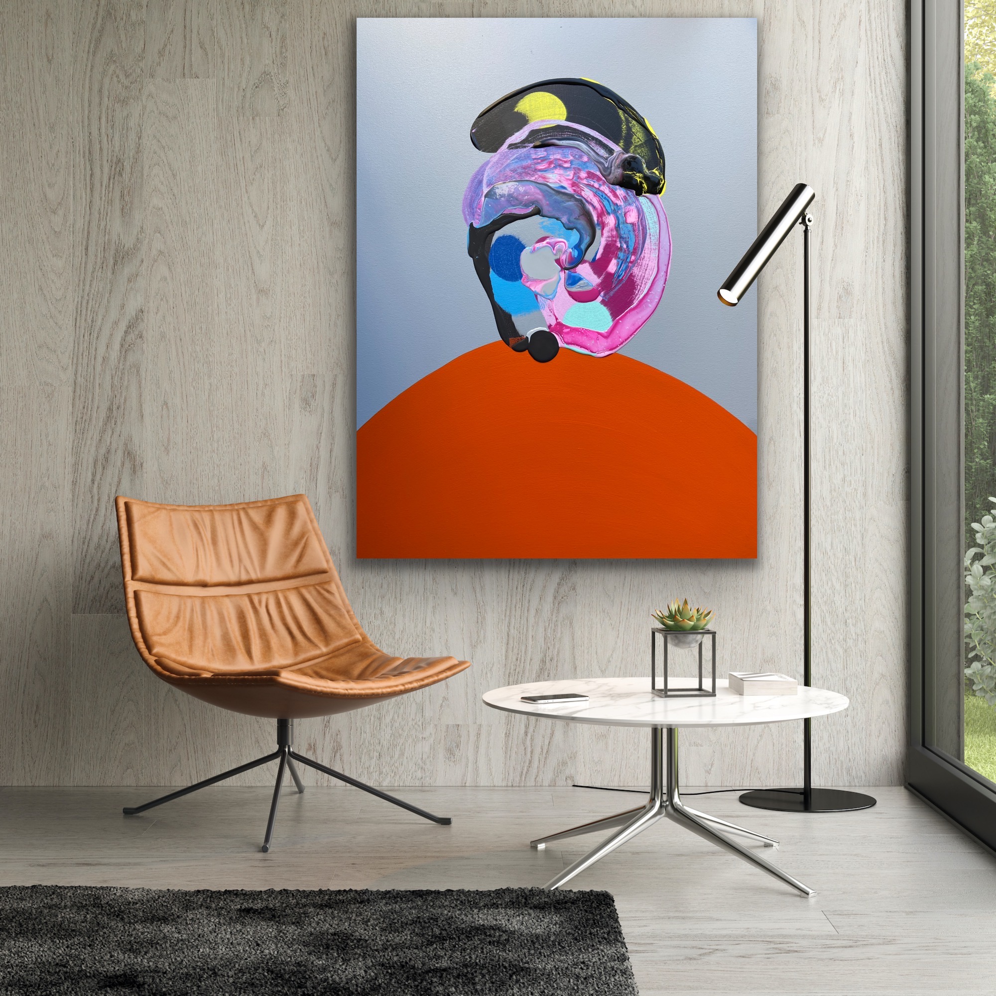 Amsterdam (Selfie 33) Vacation mode by Jonathan Redmayne. A new abstract portrait action painting that captures the essence of the current climate…a powerful piece with beautiful brush strokes . Dynamic colours exploring shape, form, movement and the ability to change the minds perception of concept . Painted on 18 July 2022.
