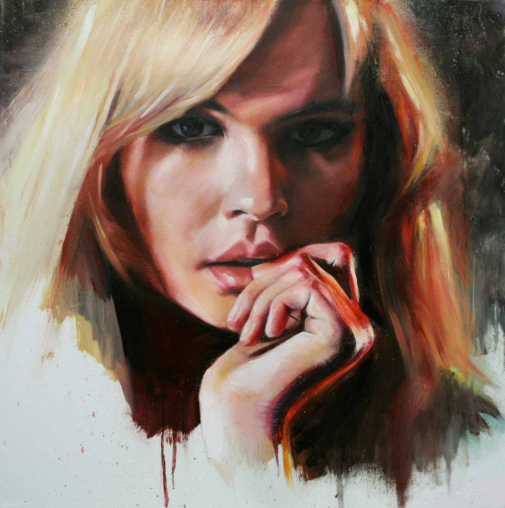 ‘Anastatia’ by Stuart Ross is an original Oil painting on Linen Canvas. A large scale portrait with an ‘abstract-realism’ flair. From afar, this piece is quite realist — But as one draws near, the observer discovers dripping paint, bold strokes, splashes and a ranges of textures that delivers a unique viewing experience.