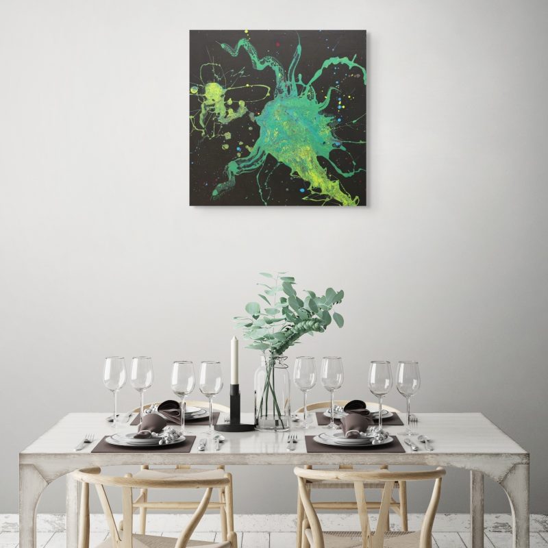 Base acrylic Paint Flotrol and silicone top design acrylic paint and posca art pens. Artwork on stretched canvas