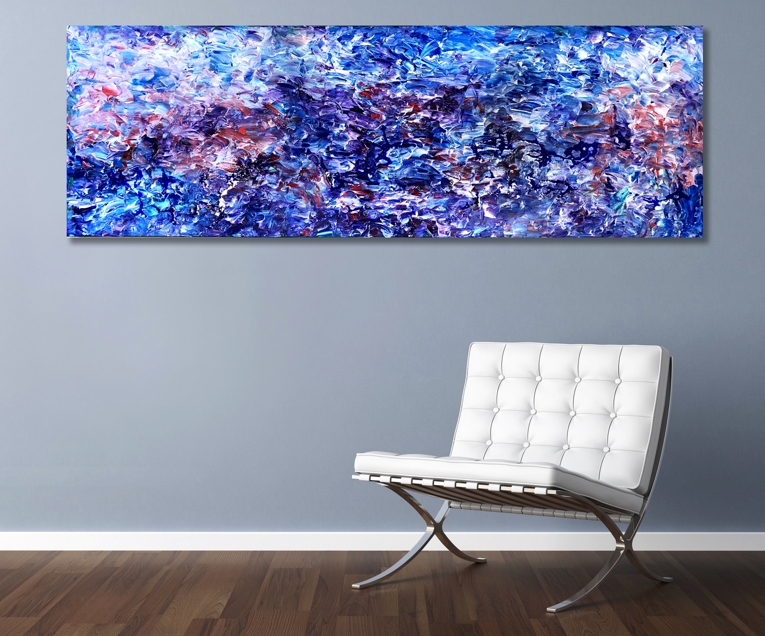 This work is painted on professional-grade canvas and has been sealed with varnish. The canvas has dimensions is 152.4 cm in width by 50.8 cm in height.