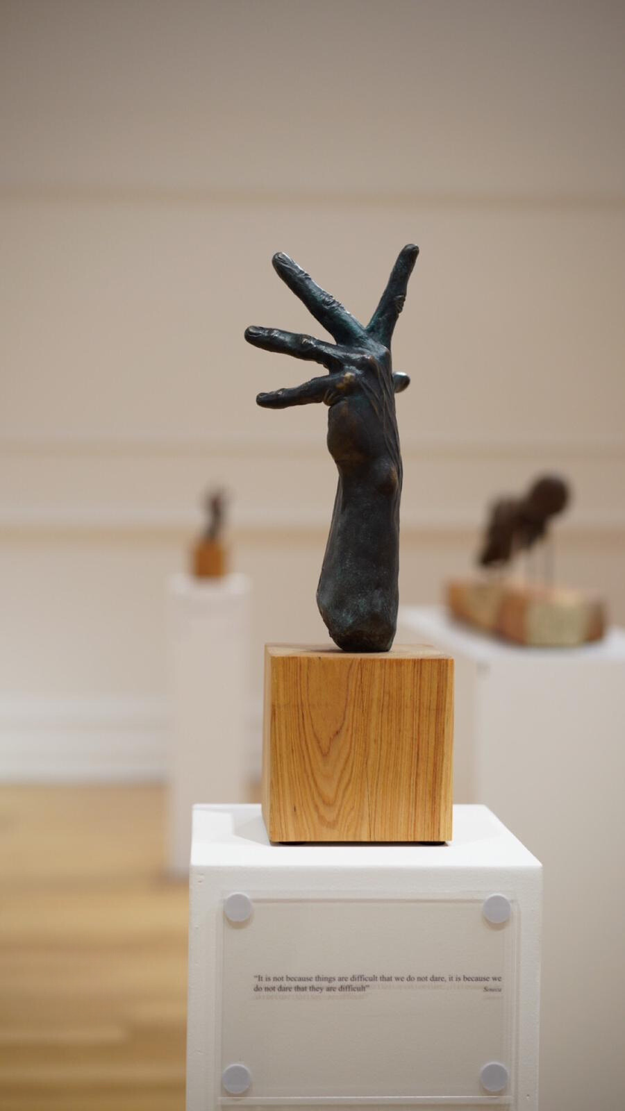 Bronze casted mounted on a cypress pine cubic base with “vert-de-gris” and wax finish.