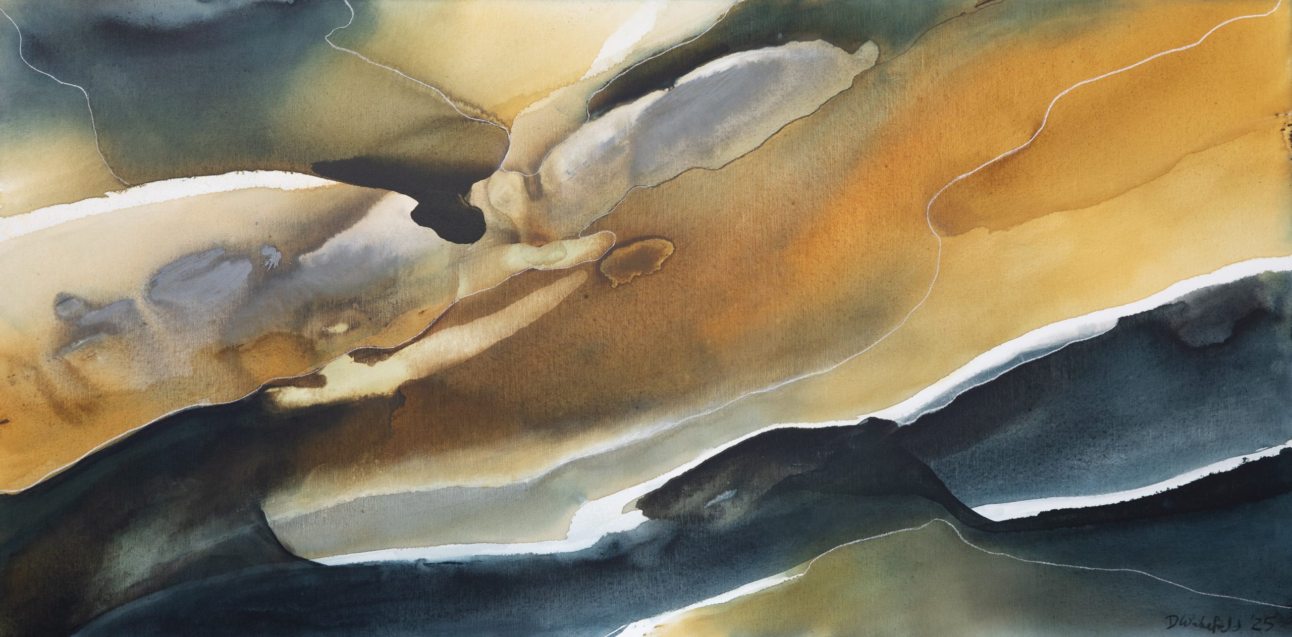 Andalucia 2 by Dinah Wakefield is inspired by the light, the colours and the natural beauty of the Noosa region of Australia. “What I love most about Noosa is the interplay of light. From the oceans to the clouds, to the river estuaries and the hinterland, this canvas unfolds before me every day and finds expression in my paintings”.