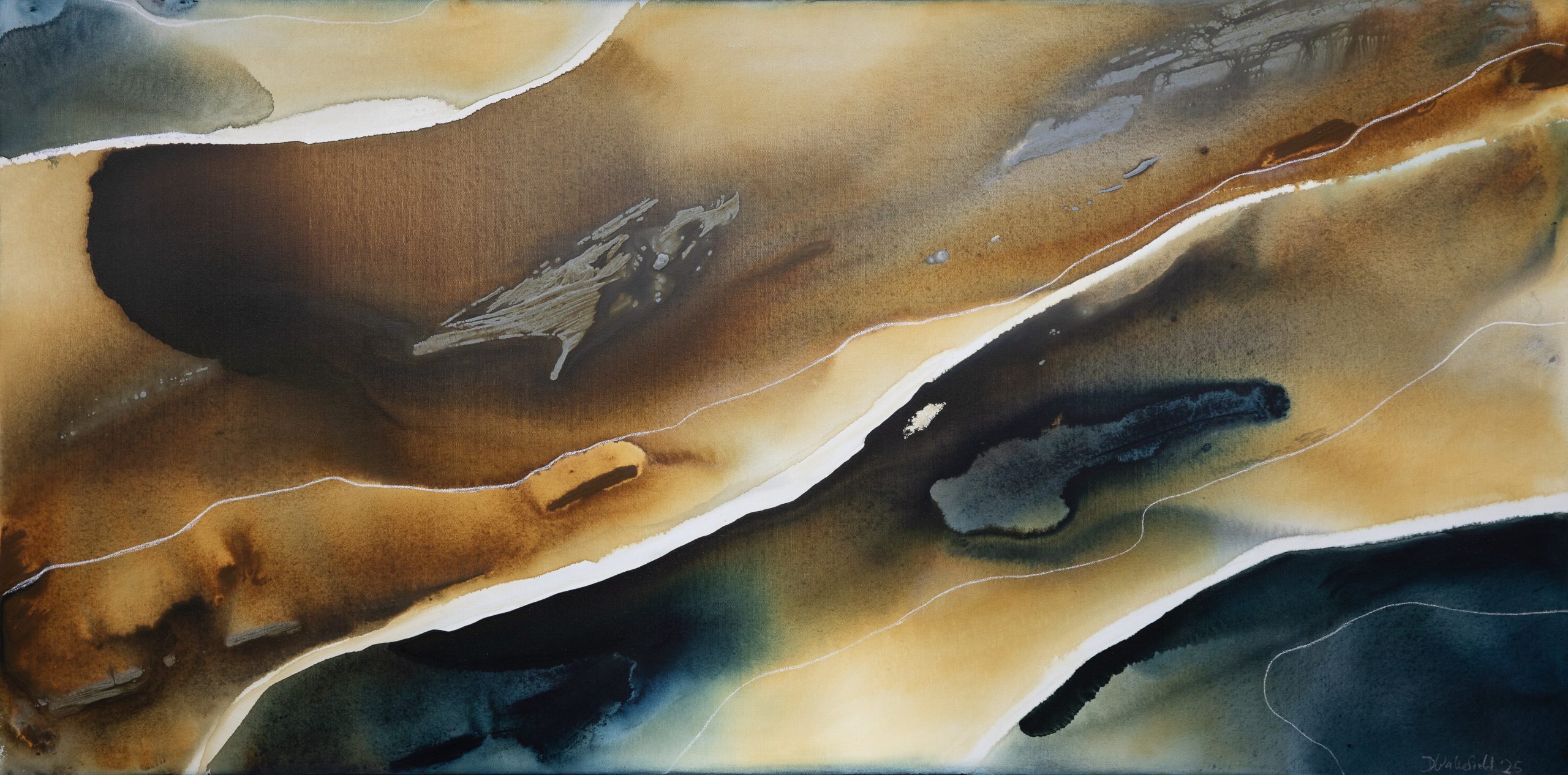 Andalucia 3 by Dinah Wakefield is inspired by the light, the colours and the natural beauty of the Noosa region of Australia. “What I love most about Noosa is the interplay of light. From the oceans to the clouds, to the river estuaries and the hinterland, this canvas unfolds before me every day and finds expression in my paintings”.