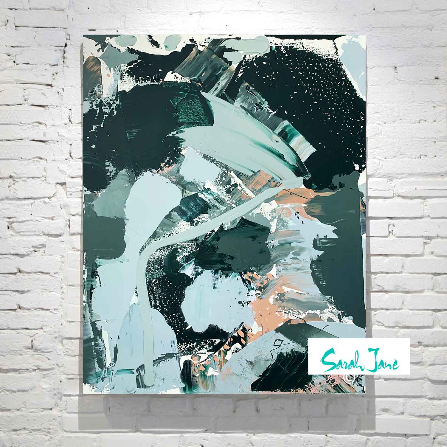 Lets add some lush vibes to your space with Another Day in Paradise I. An Abstract Painting Green Blue Colours inspired by the Phil Collins Song. By Australian Artist Sarah Jane
