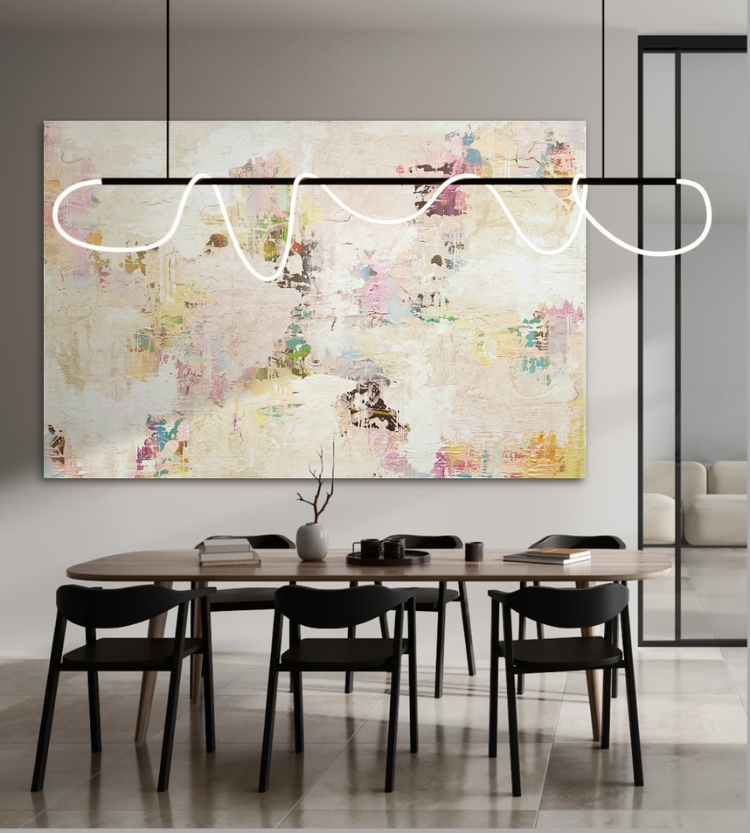The pops of colour capture each movement, subtly broken up by the soft whites and pinks, which brings a gentleness to any space.