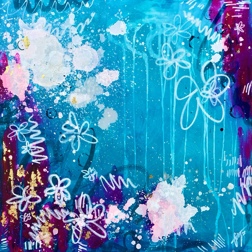 Acrylic, alcohol ink, oil pastel, and gold foil on stretched canvas