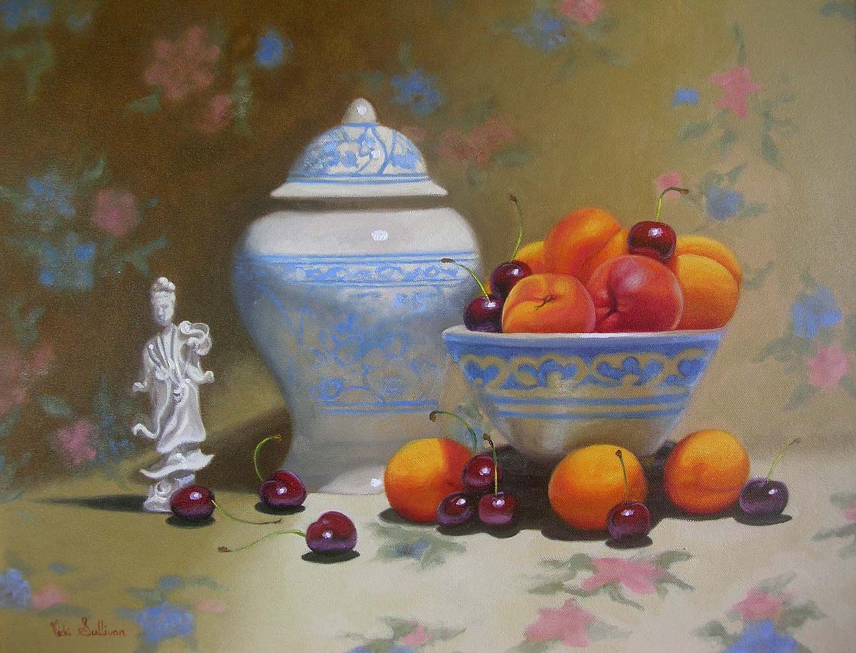 Apricots with Ginger jar, original oil painting by Vicki Sullivan