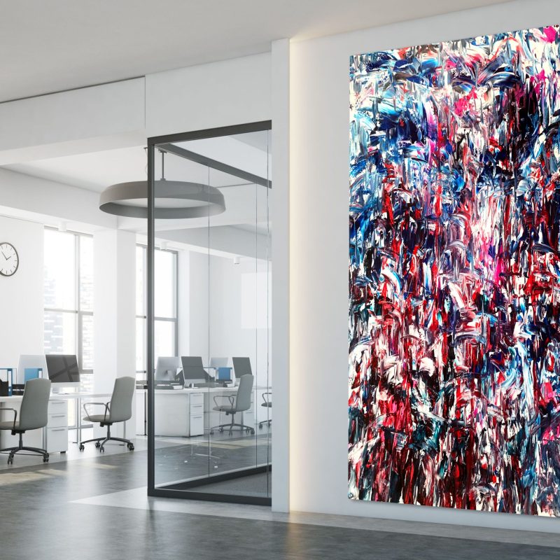 This is a large colourful abstract painting on canvas ready to hang on your beautiful wall.