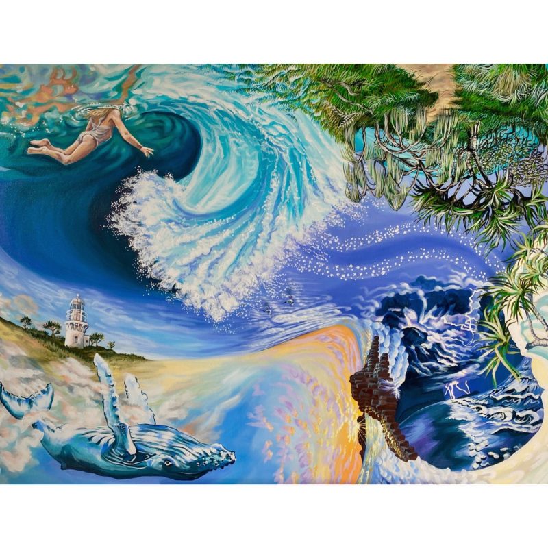 In this painting the light and dark and vibrant colour create an otherworldly tranquility. It continues with my fascination in the sublime of micro-worlds, biology and sea-life.