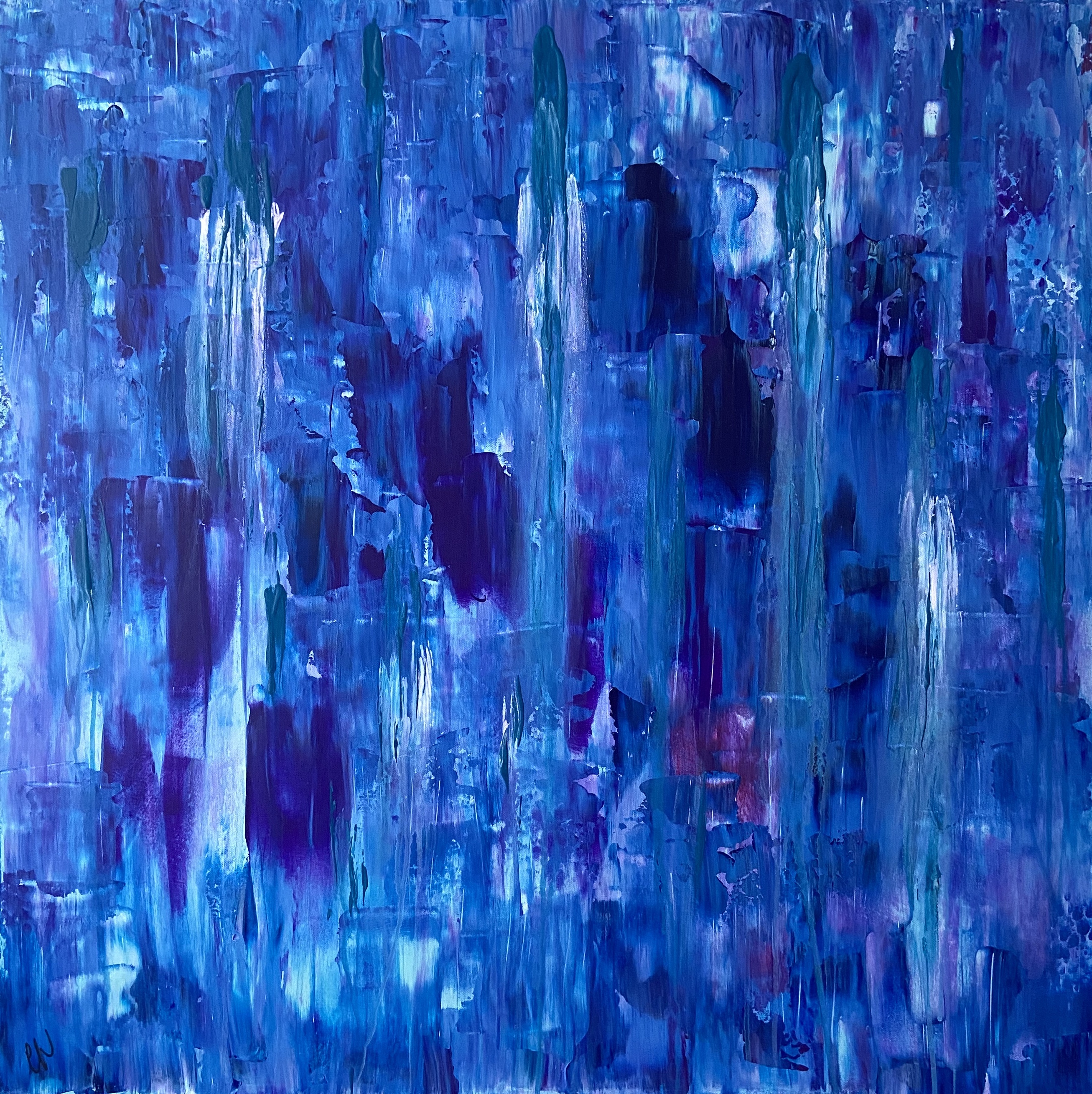 Aqueous is an abstract piece with deep colours that will suit any room. Acrylic on canvas, ready to hang.