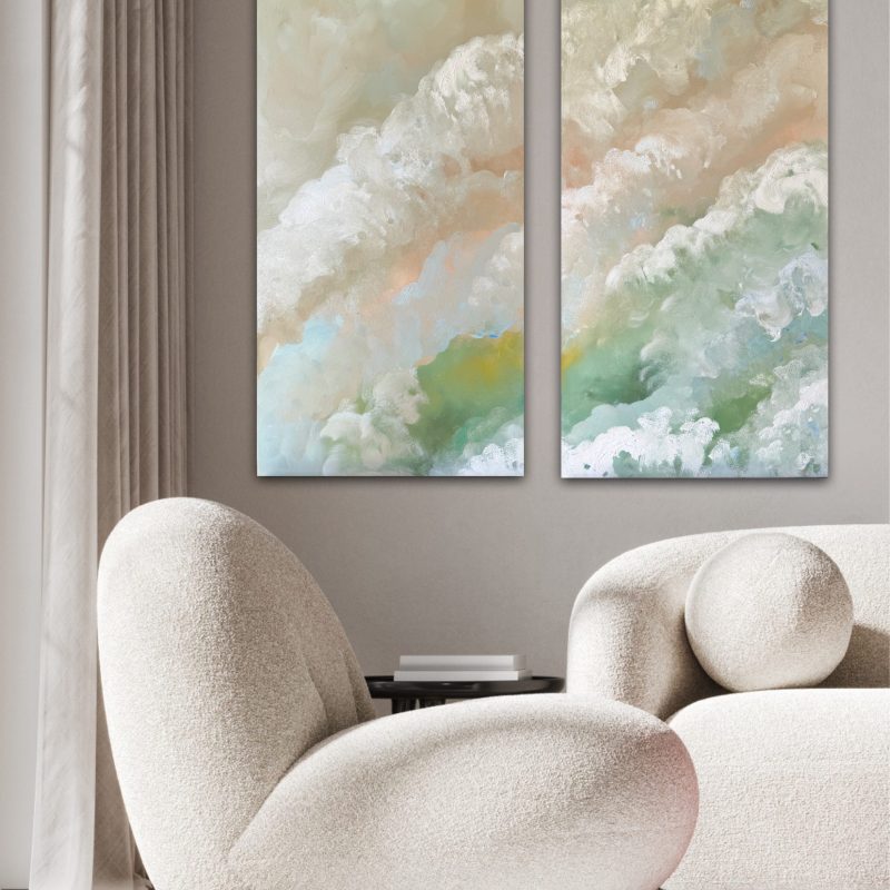 Oil on canvas, varnished to preserve the textures and colours. Unframed but edges painted black with wire hanger fitted so it can be enjoyed straight away. Signed on the front right hand corner. This is an original one-off painting. Varnished. Hanging wire fitted. Edges painted black. Unframed.