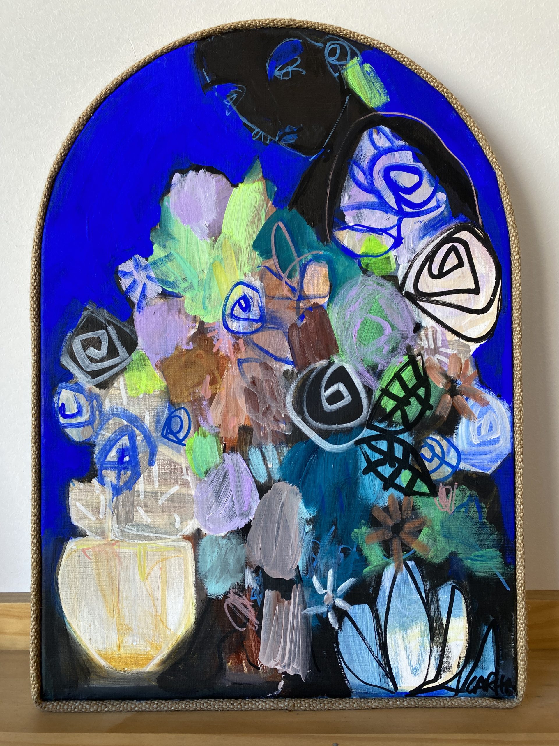Acrylic on arched stretched linen canvas