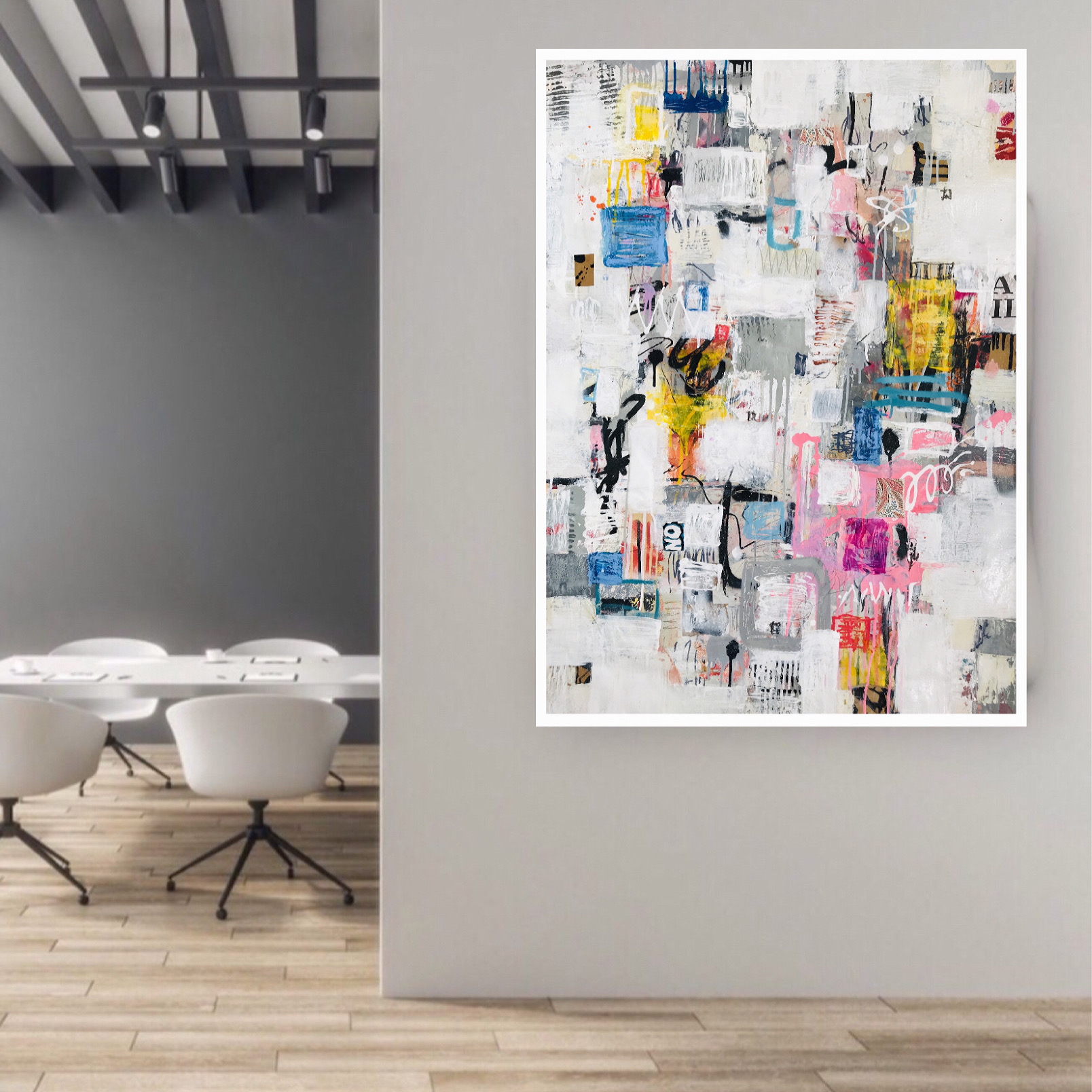 This artwork has a very textured finish created by built up layers of Paper and Paint, a visual effect mimicking the look you would see in the street where this effect is created over time on Graffiti Walls & Advertising Spaces. These imperfections are part of the overall look and feel of the finished work. Insitu examples are not to scale.