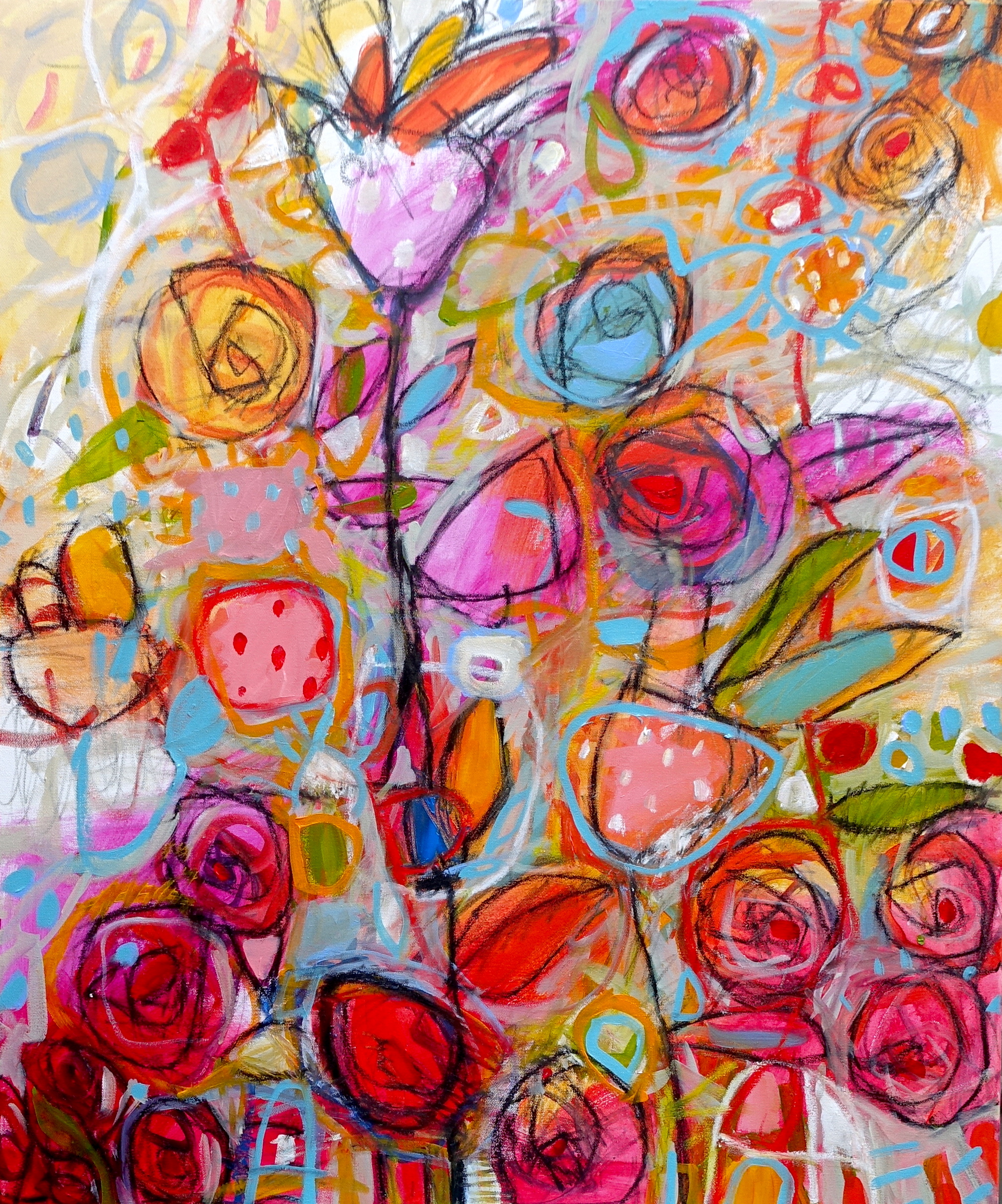 Artist Statement: There is never enough happy endings, flowers, love or gin in the world. This work is a landscape of red flowers in the sun.