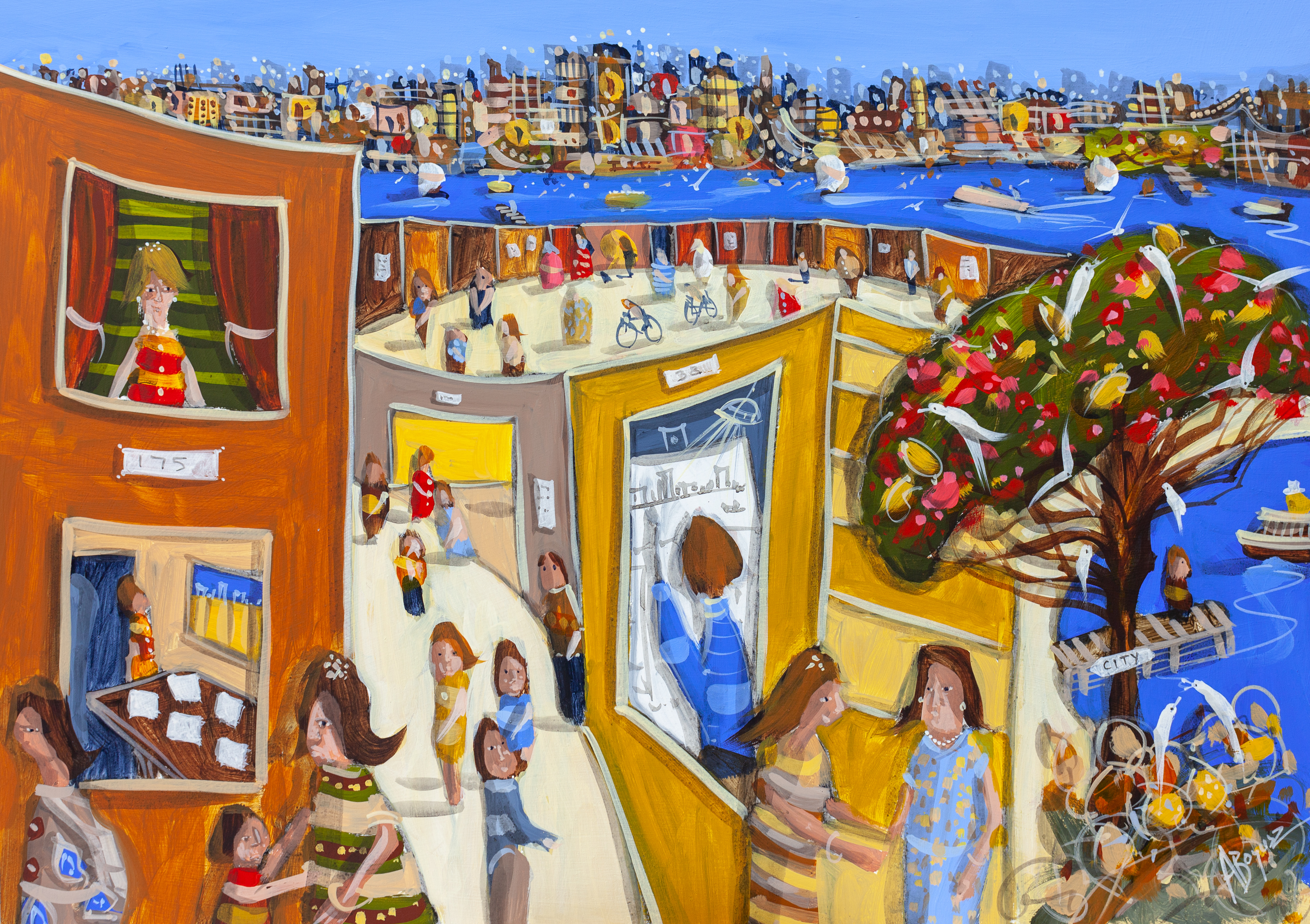 Inspired my hometown of Brisbane but with my own twist. Blues skies and everyone out and about!