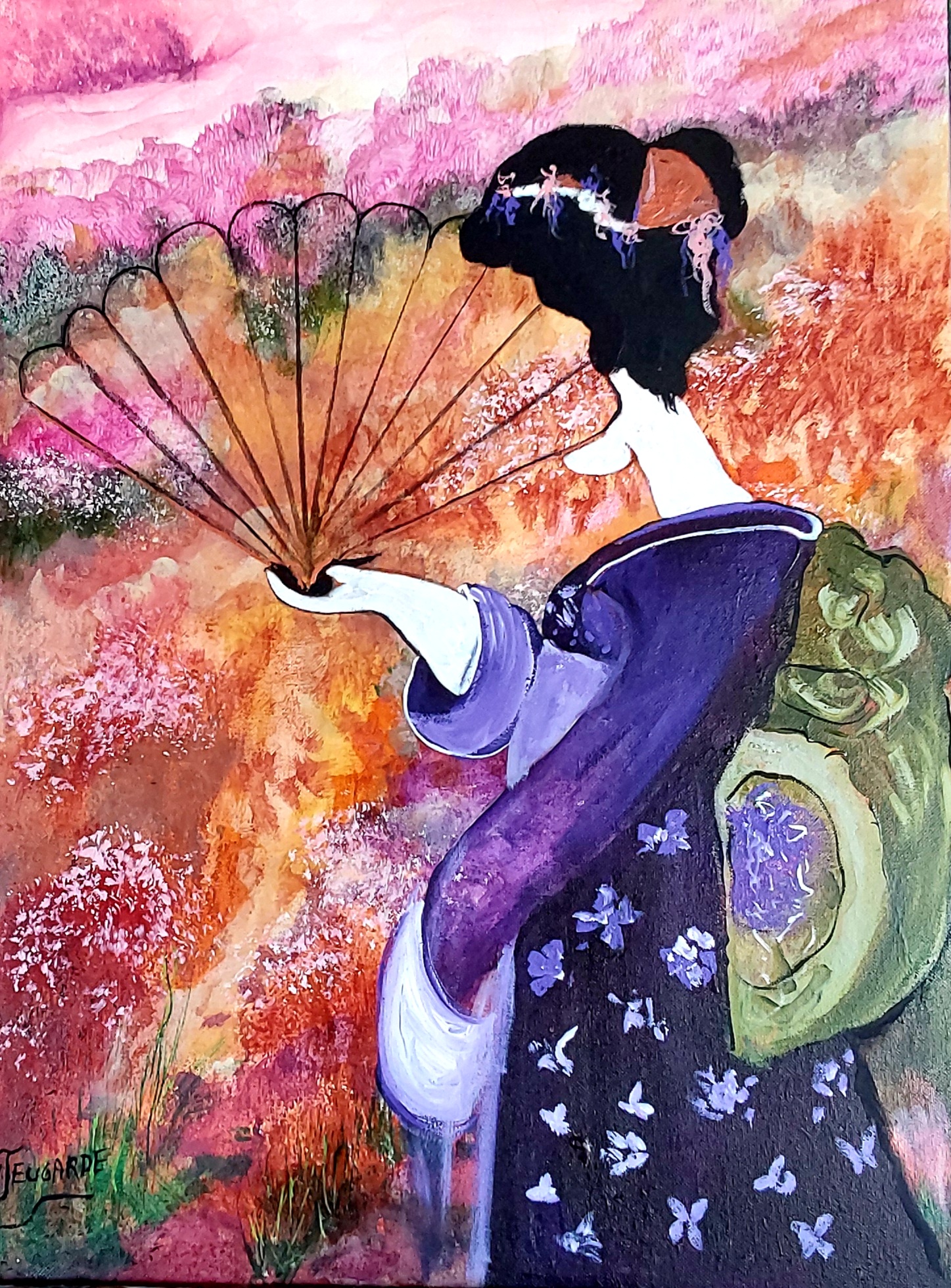 Asami by Valerie Eugarde– Asami means morning beauty, a lovely name fitting for a beautiful Geisha girl immersed in the landscape surrounded with pretty blossoms.