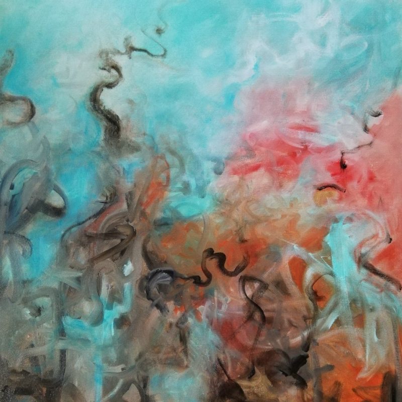 This artwork continues my experimentation with using different techniques to apply the paint Sponges, rags, plastic, scrapers, paint pens, spray packs, stencils, pencils, in fact anything except brushes.