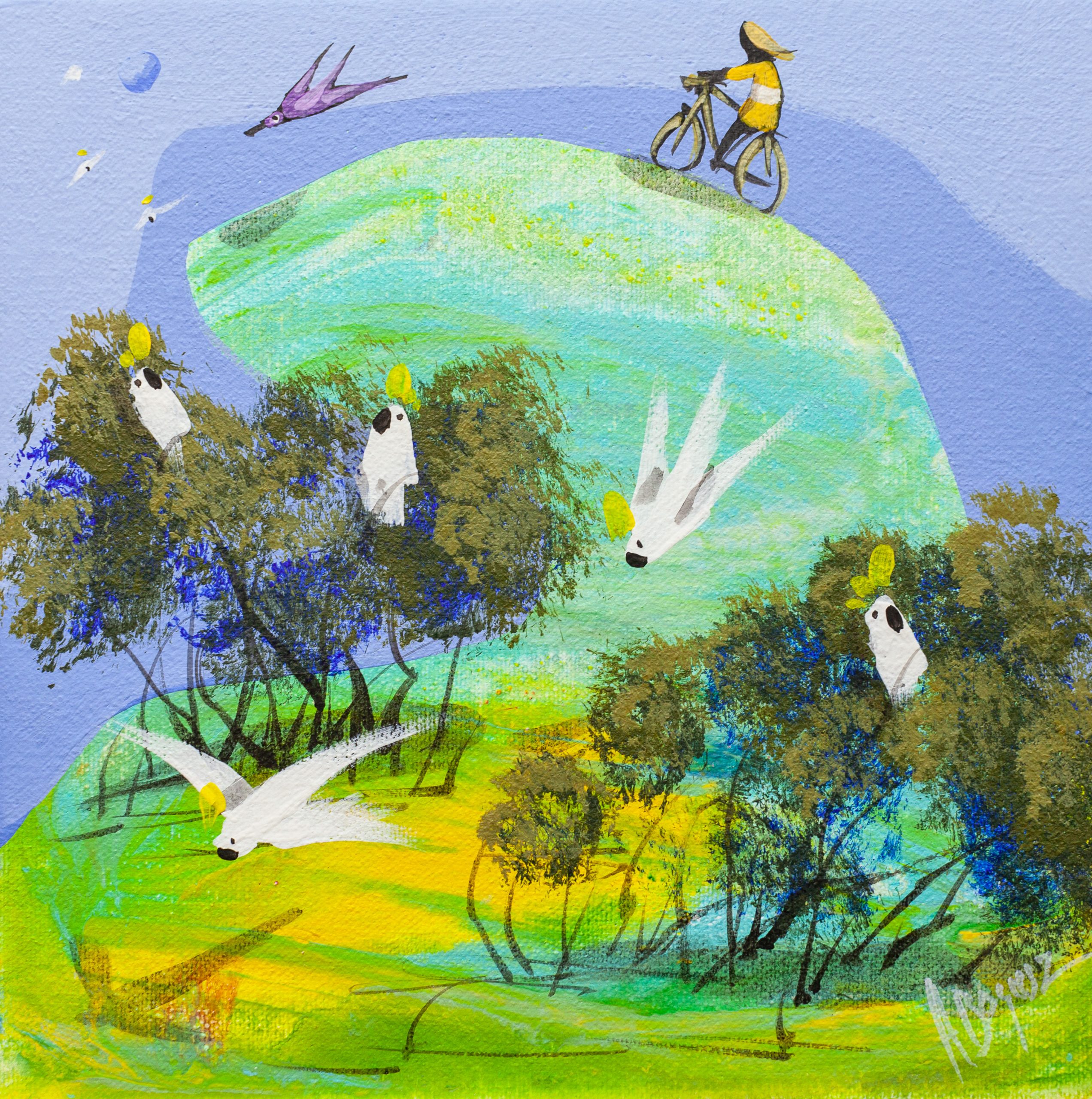 This series is a culmination of almost 25 years of painting. It draws inspiration from many sources, including my time growing up in Townsville, Nth Queensland, my father’s artwork, my wife and two children and Zen Buddhism. These images do not represent any particular place or time. I want them to have a universal appeal and ambiguity that allows viewers to write their own story into the image.