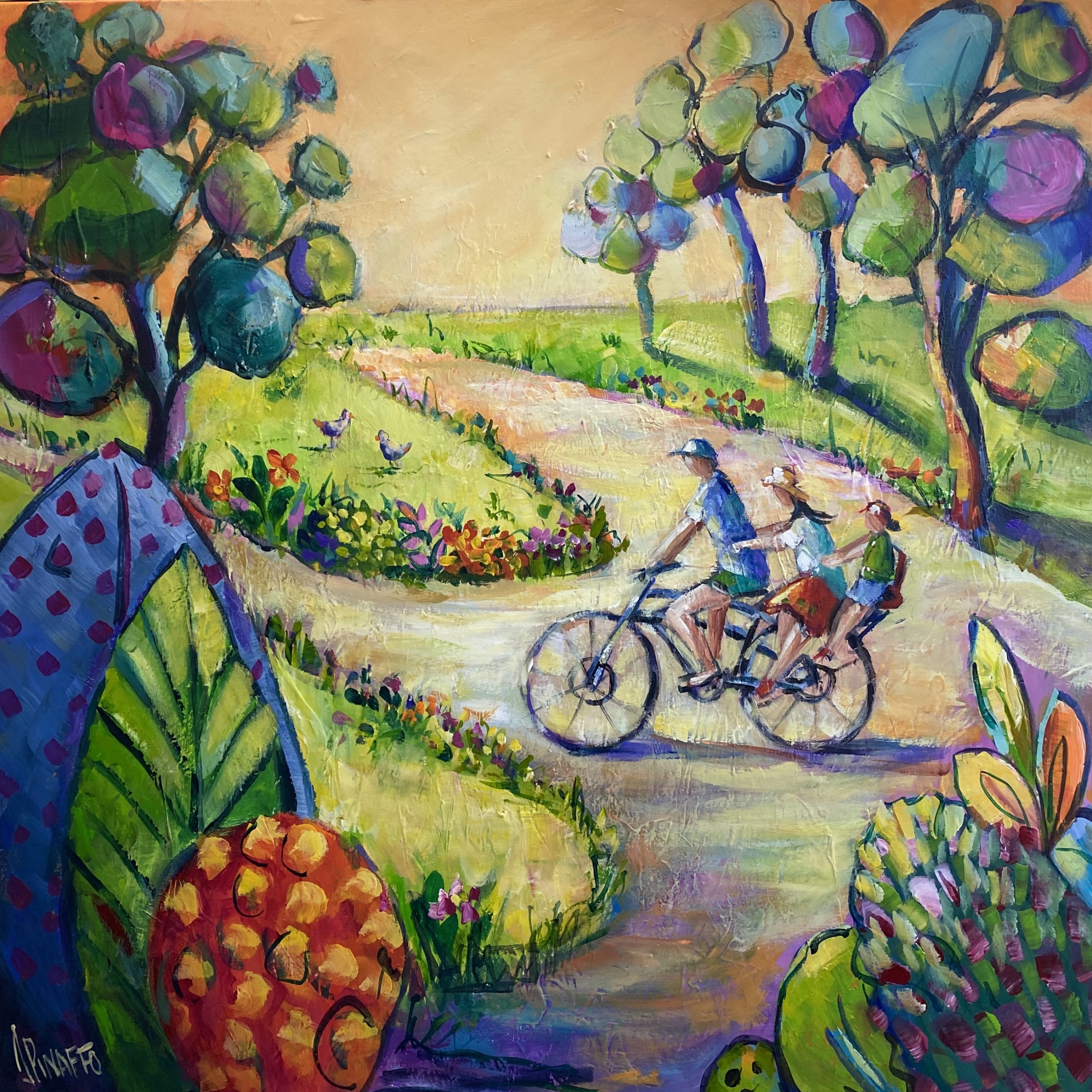A colorful happy painting that would brighten up any wall of any home/office. Signed with a certificate of authenticity. Finished with satin varnish.