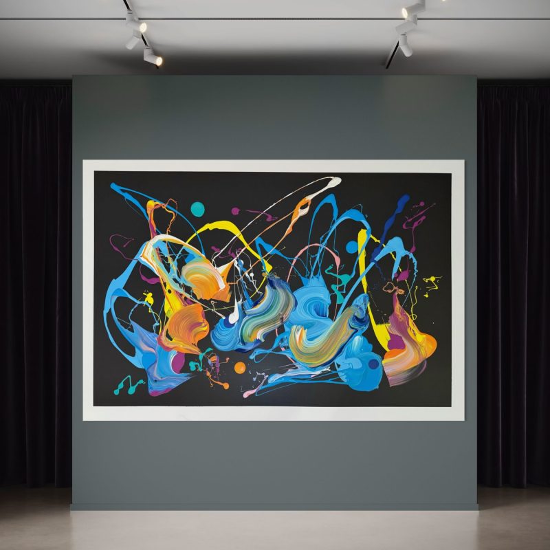 The Artwork comes framed in black and ready to hang, and it is mounted under a clear acrylic sheet.