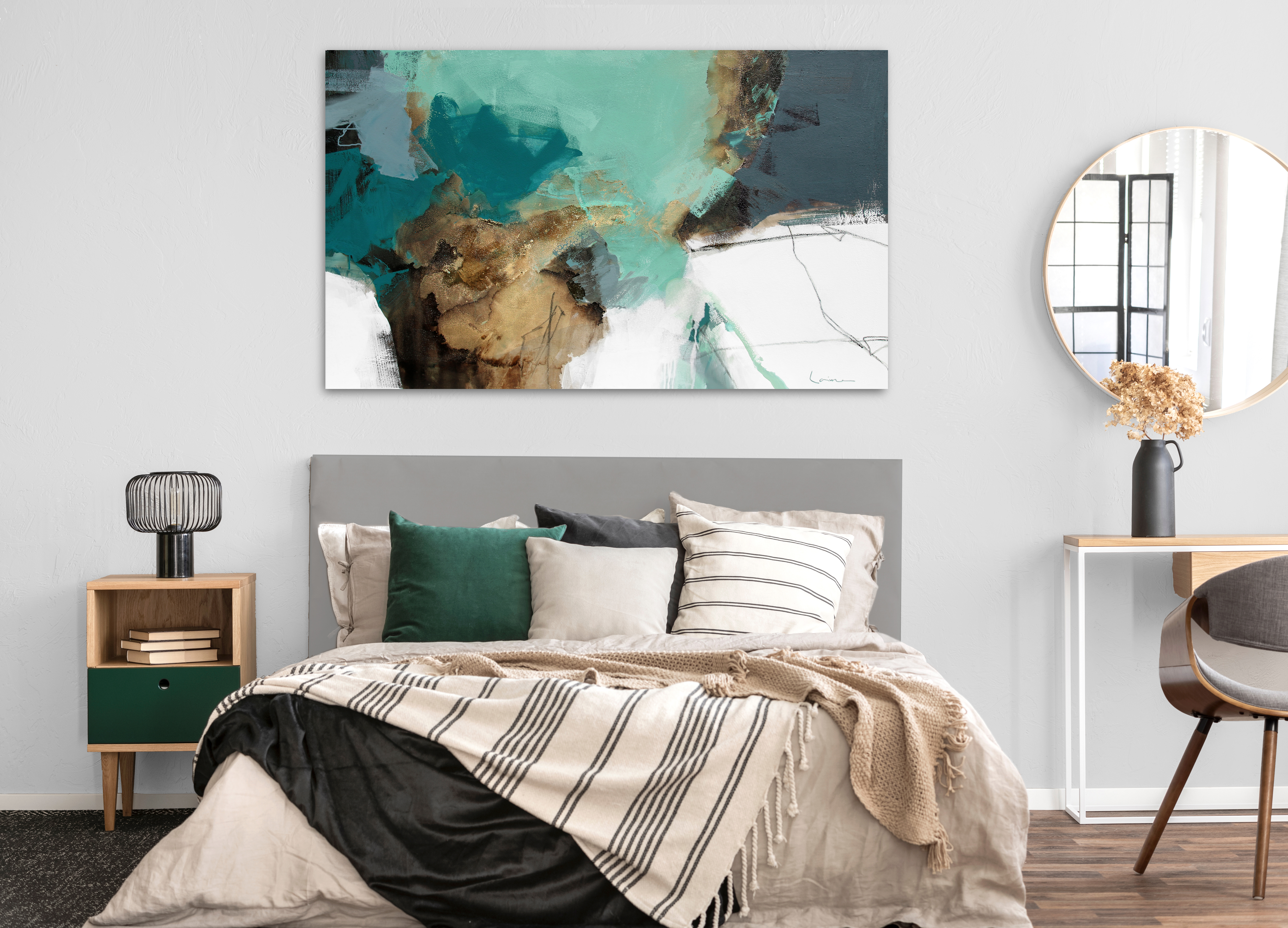 Aurora is a beautiful original 152cm x 91cm abstract painting from my 2020 series ‘Fresco’.