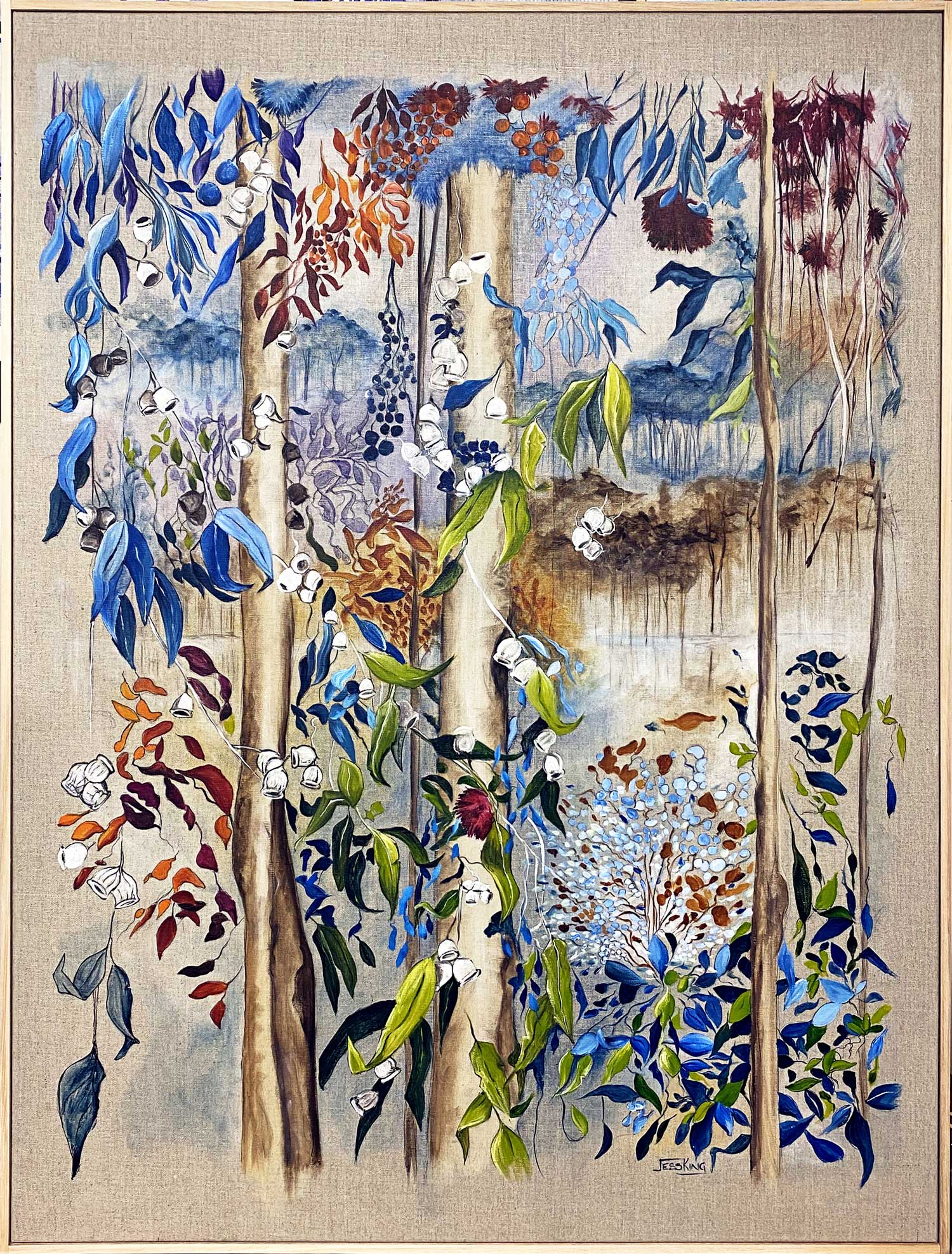 Aussie Bush 7 by Jess King – Walking through the Australian bush is always full of colour and plant life. If you are hiking, walking or heading to the beach there will always be magnificent nature around to captivate you. My idea is to gather them together in one space for you to be drawn to constantly.