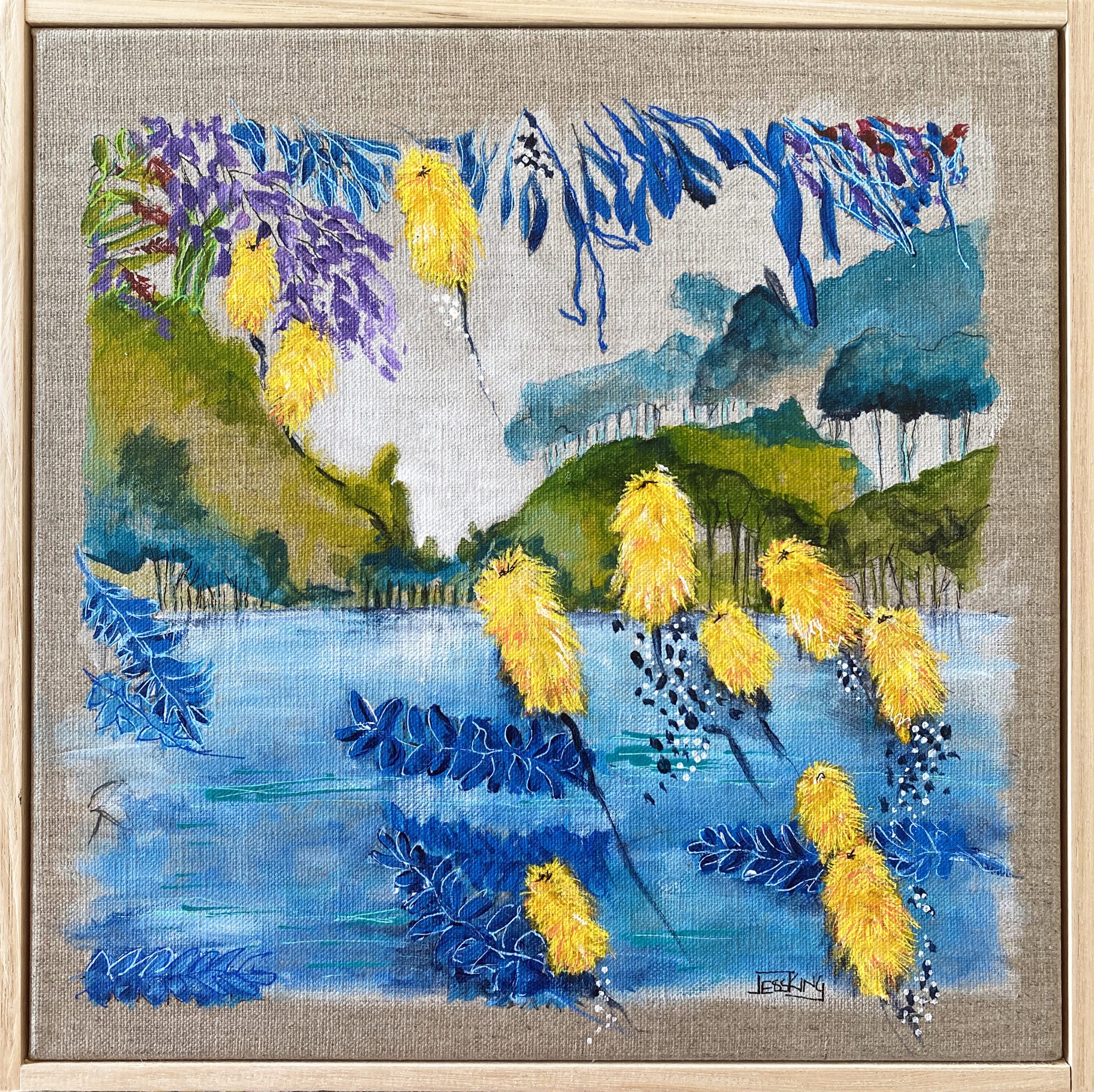 Taking a walk through our beautiful bushland you can see through gum leaves into the distance. The Australian bush is filled with beautiful colours and textures, I try to capture that in my bush series.