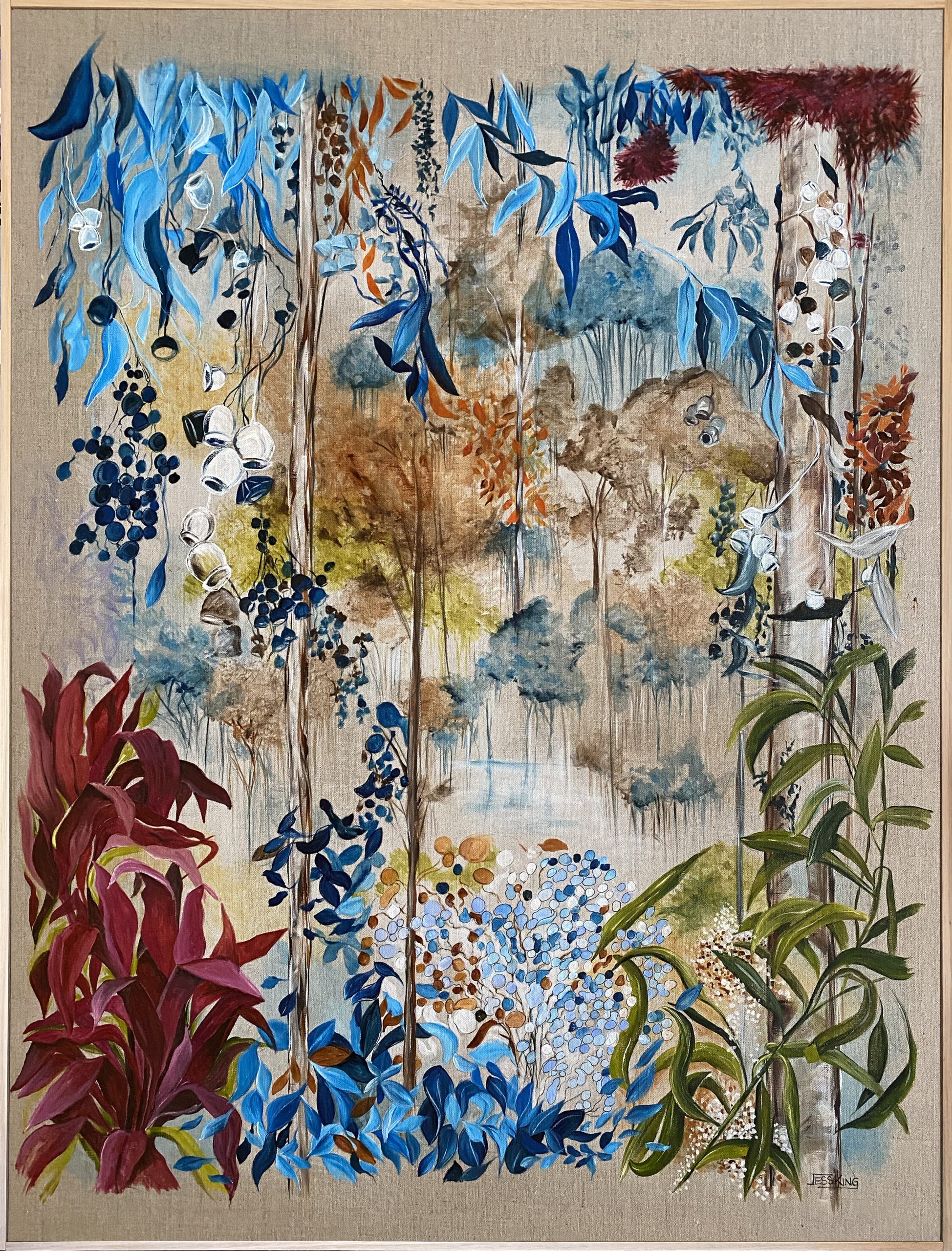 Aussie Bush Walk by Jess King – Walking through the Australian bush is always full of colour and plant life. If you are hiking, walking or heading to the beach there will always be magnificent nature around to captivate you. My idea is to gather them together in one space for you to be drawn to constantly.