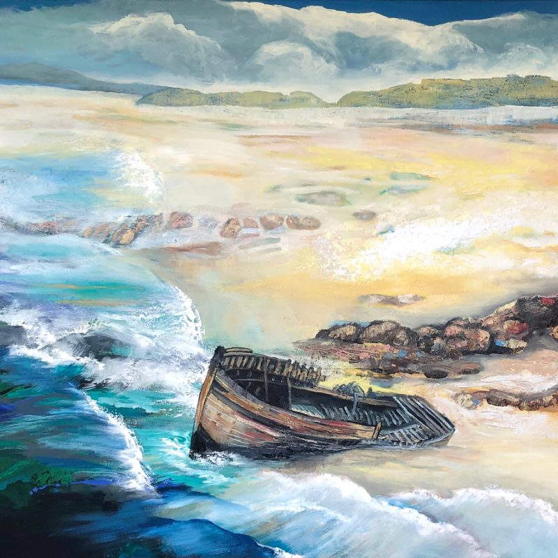 Autumn Bliss by Cathy Gilday – I always love to paint autumn leaves. I see such beauty in the colours and shapes and I just love the way they fall in layers on top of each other! This piece began in coloured inks on very heavy bodied watercolour paper, and I finished off in beautiful tranparent coloured glazes, which adds depth and shadows. It can be framed in landscape or portrait position as the composition works either way. Framing is required. Coloured inks and acrylic coloured glazes on heavy bodied watercolour paper. Can be hung in either portrait or landscape position, requires framing.
