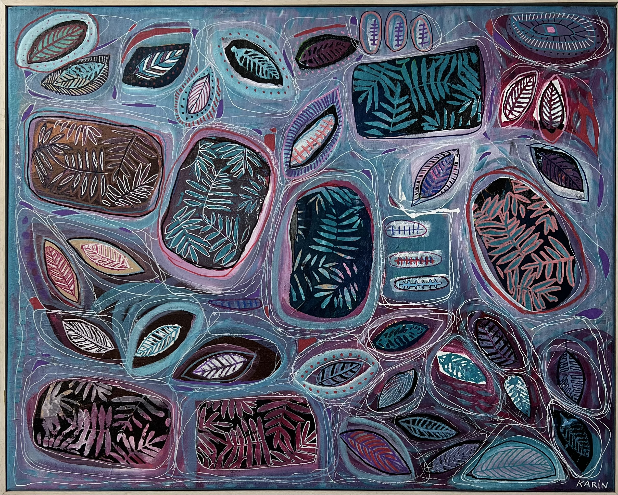 Autumn Blues by Karin Hotchkin- is not your usual Autumn leaf colours as we know eg like burnt oranges, yellows, reds, it’s Autumn blues with a bit of a twist on the norm. Iv chosen cool cools eg blues and purples, rather different to my normal choice of Autumn colours….so why ? There is though leaf and plant shapes to represent the changing of the seasons and the changing of time.
