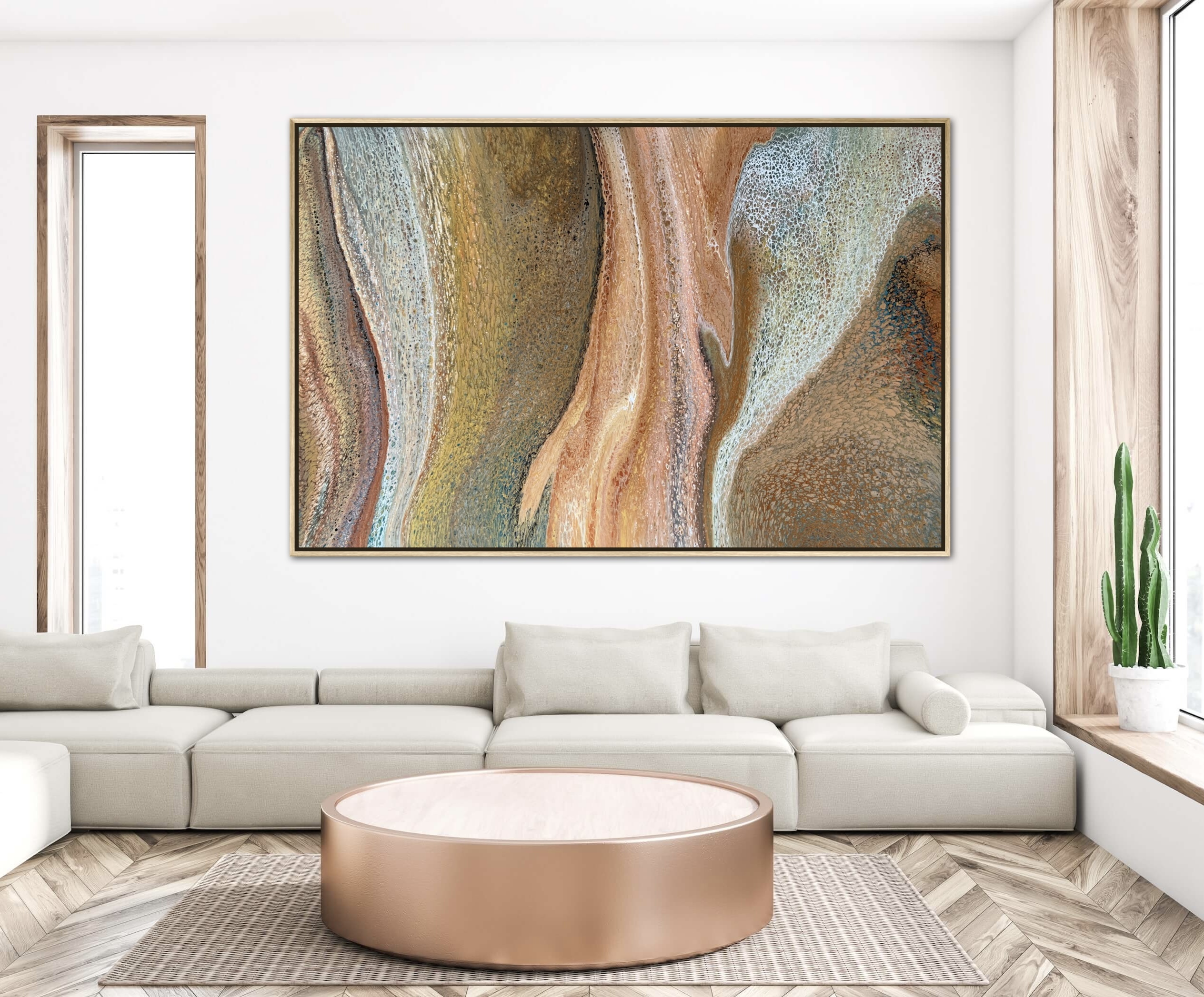 Autumn Flows by Angela Roskell – a unique, eye-catching multi-directional extra large abstract acrylic painting stretched and ready to hang.