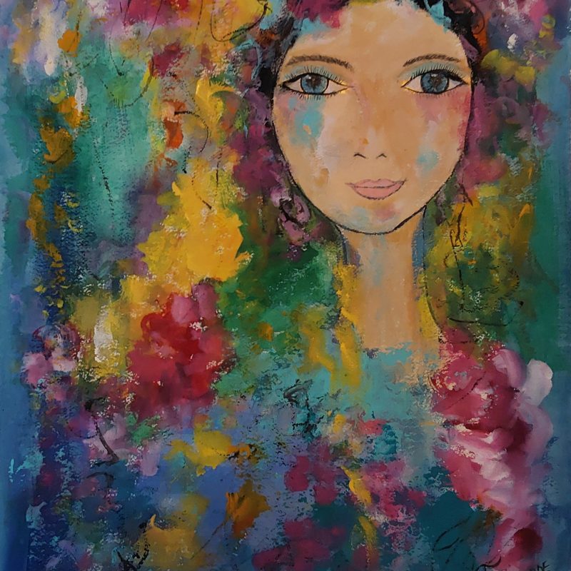 Autumn Oasis by Rosemary Legat – Acrylic paint, acrylic ink and spray paint on stretched canvas.