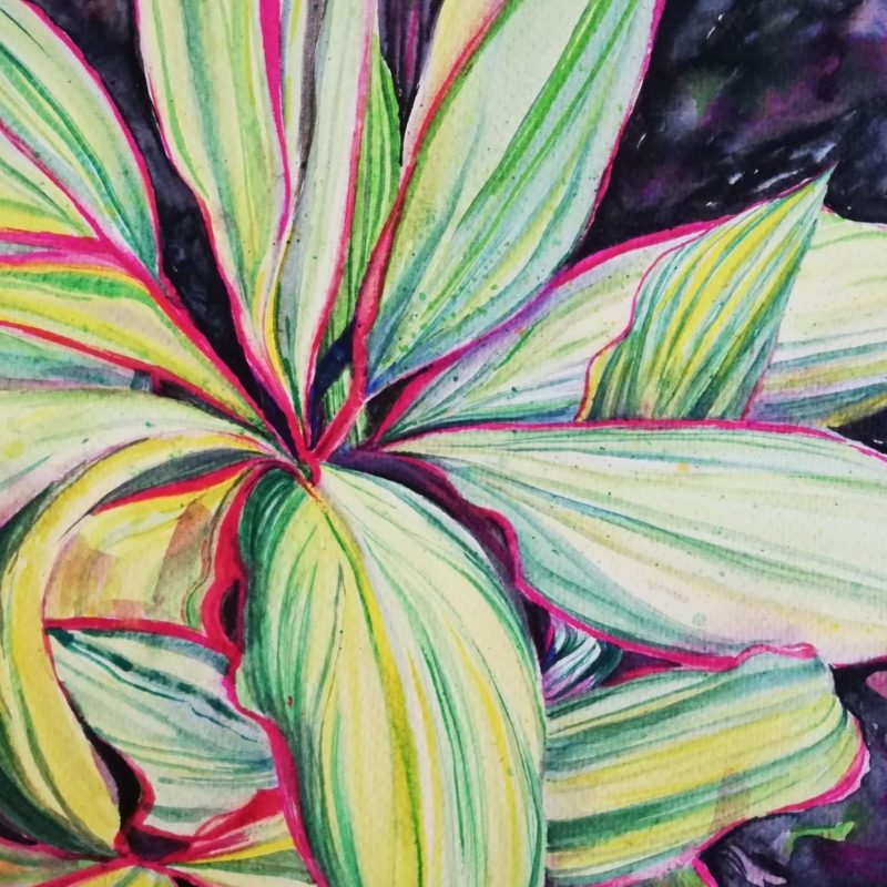 ‘Away with the fairies’Â by Fern Siebler is a playful mini original artwork featuring pinks, green, white and pure 24k gold leaf. This piece can stand freely on an entry way sideboard or desk, or be hung on your wall.