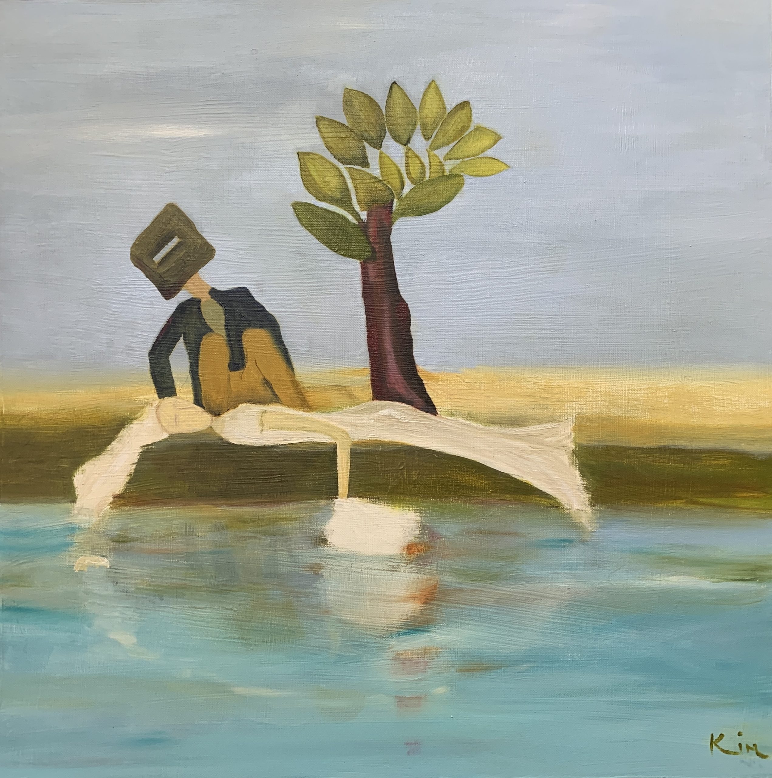 Aww Ned What’s happened Now – Lone Tree Creek – Original oil painting on stretched by Kim Rees. A retro little painting just for fun – part abstract – part surreal – part figurative – part landscape – label as you will.