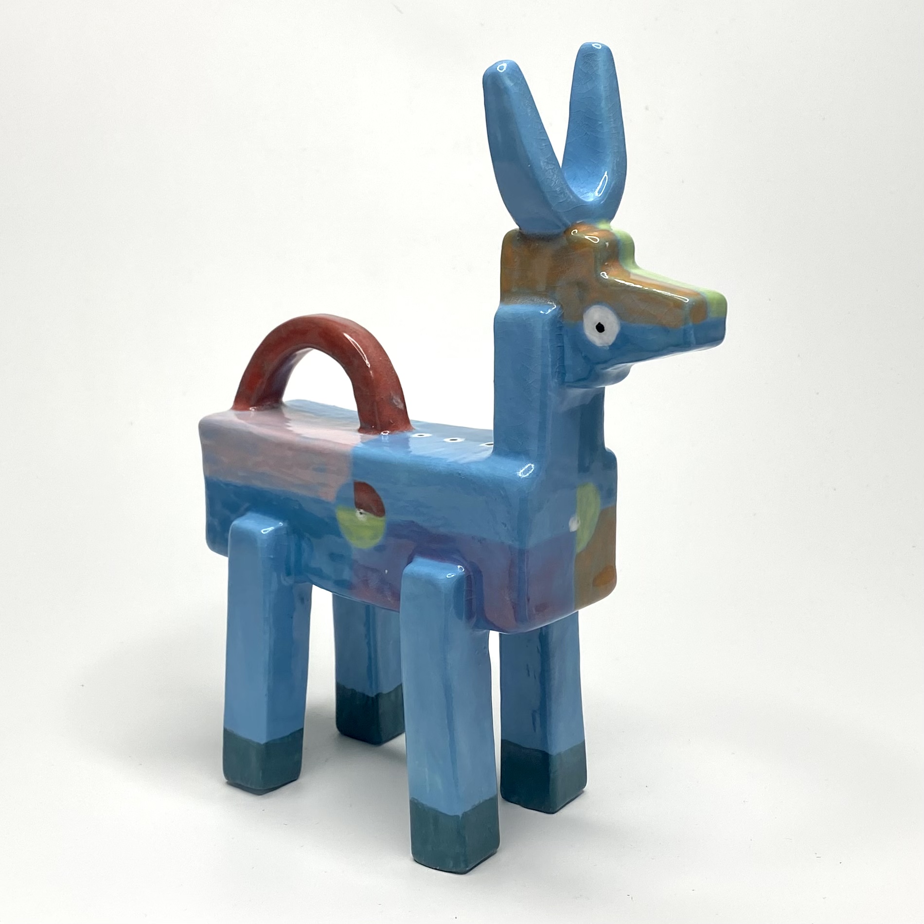 Delicate little goat glazed in soft tones with an overall azure feel.