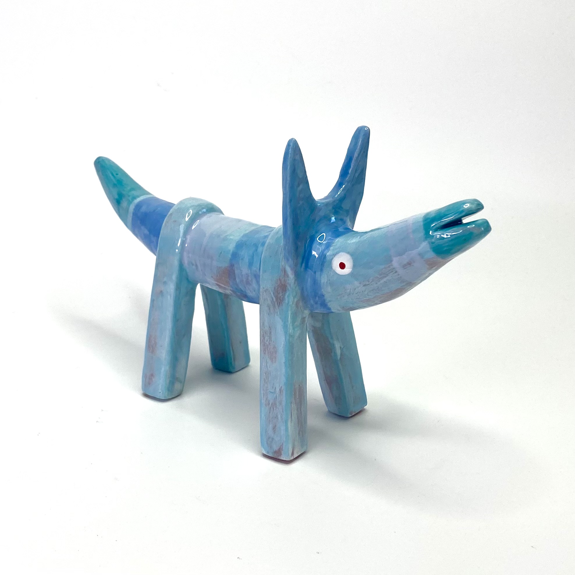 Super cute ceramic dog in various shades of azure, sapphire and cerulean glazes.