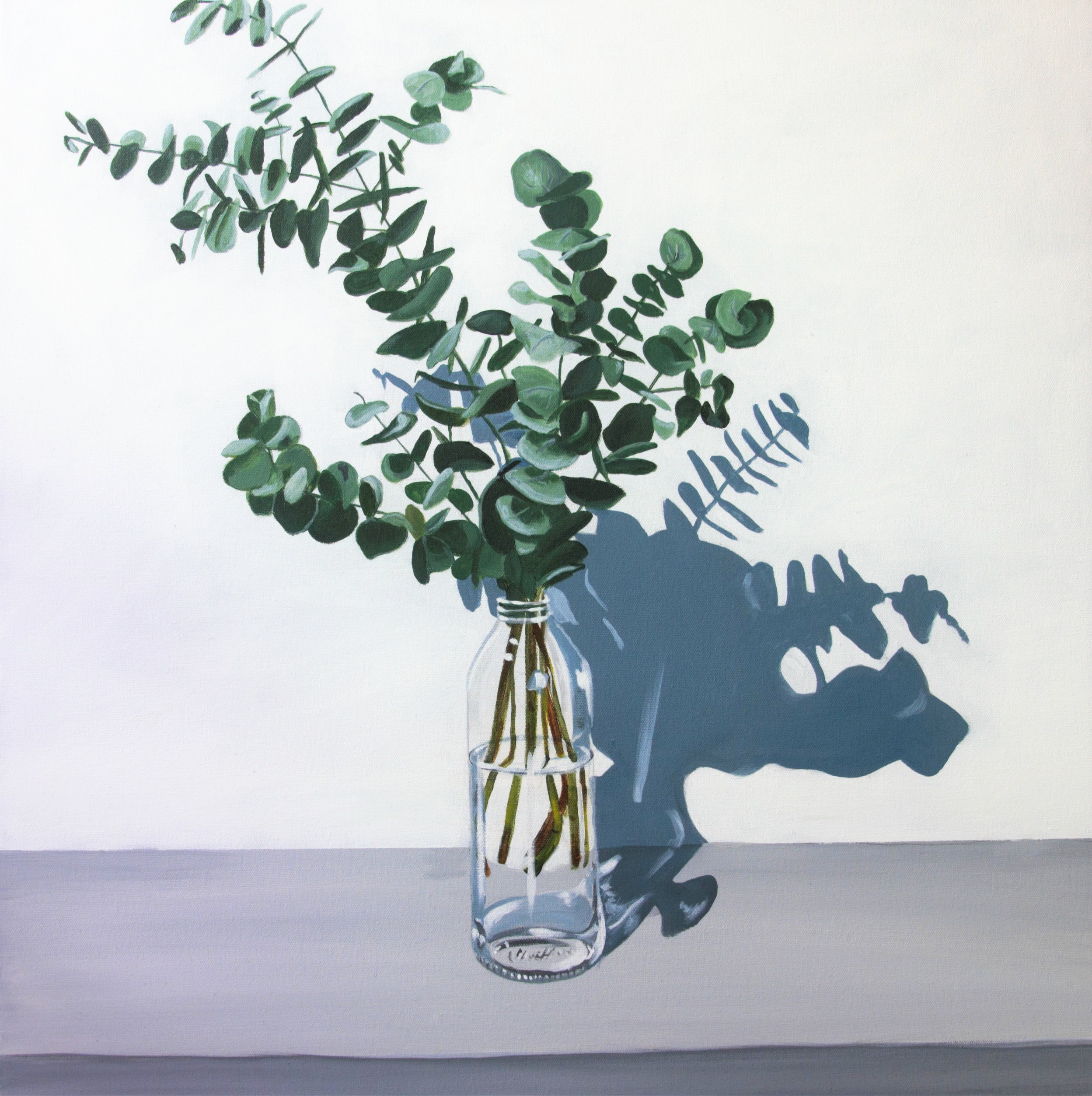 Baby it’s cold outside by Sigrid Patterson – Eucalyptus leaves in glass bottle. An original painting by Sigrid Patterson.