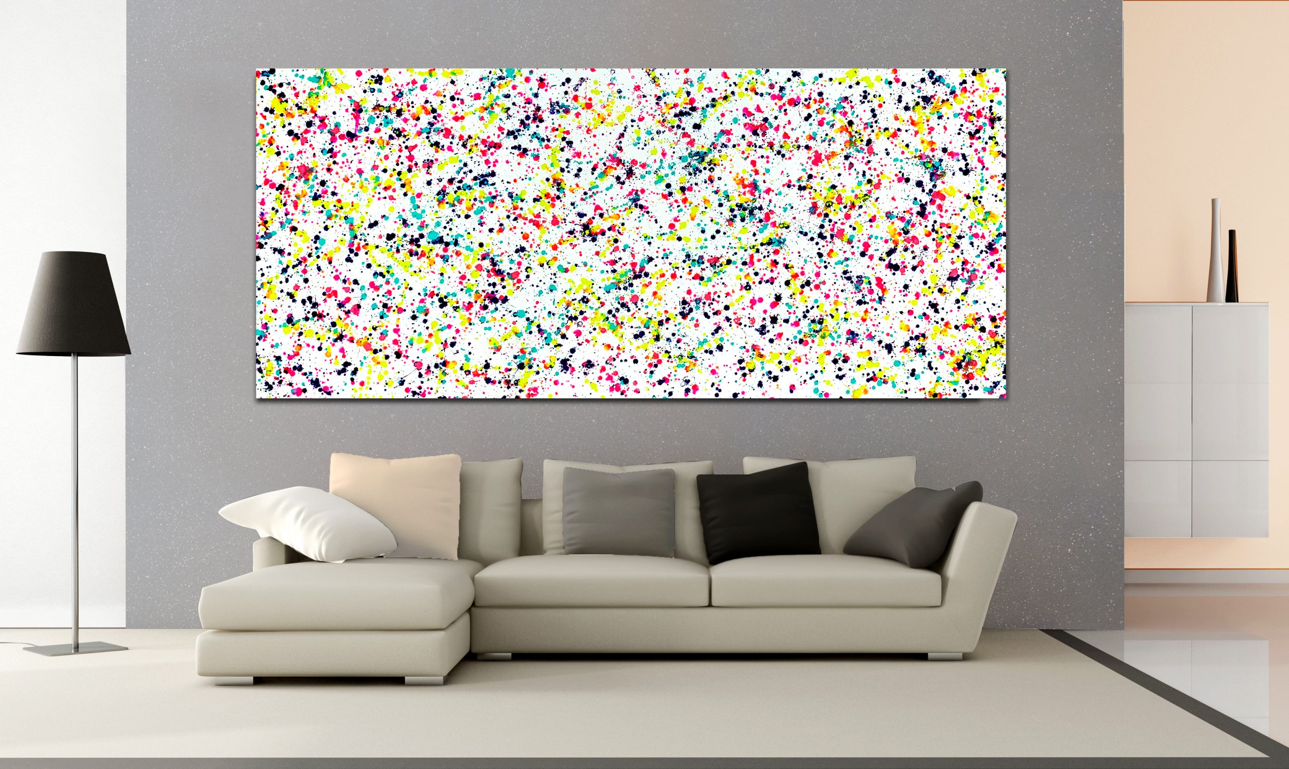 This work is painted on professional-grade canvas and has been sealed with varnish. The canvas has dimensions is 200 cm in width by 88cm in height.