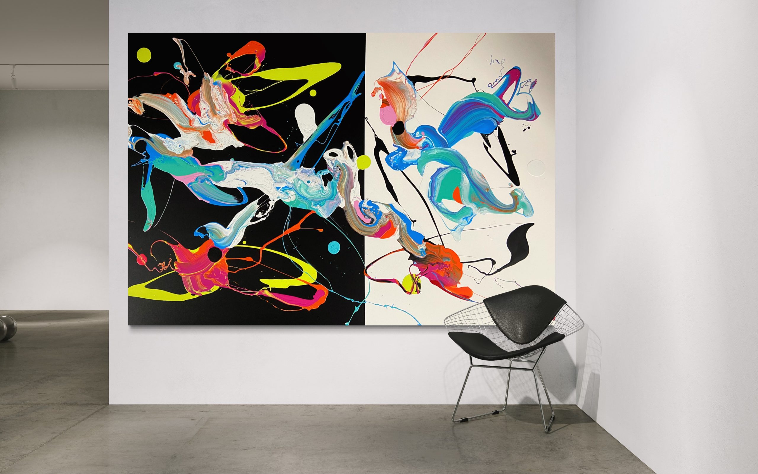 Back Under Control by Jonathan Redmayne is my latest painting for September 2024 , goes deeper into the exploration of rapid movement ,cause and effect.