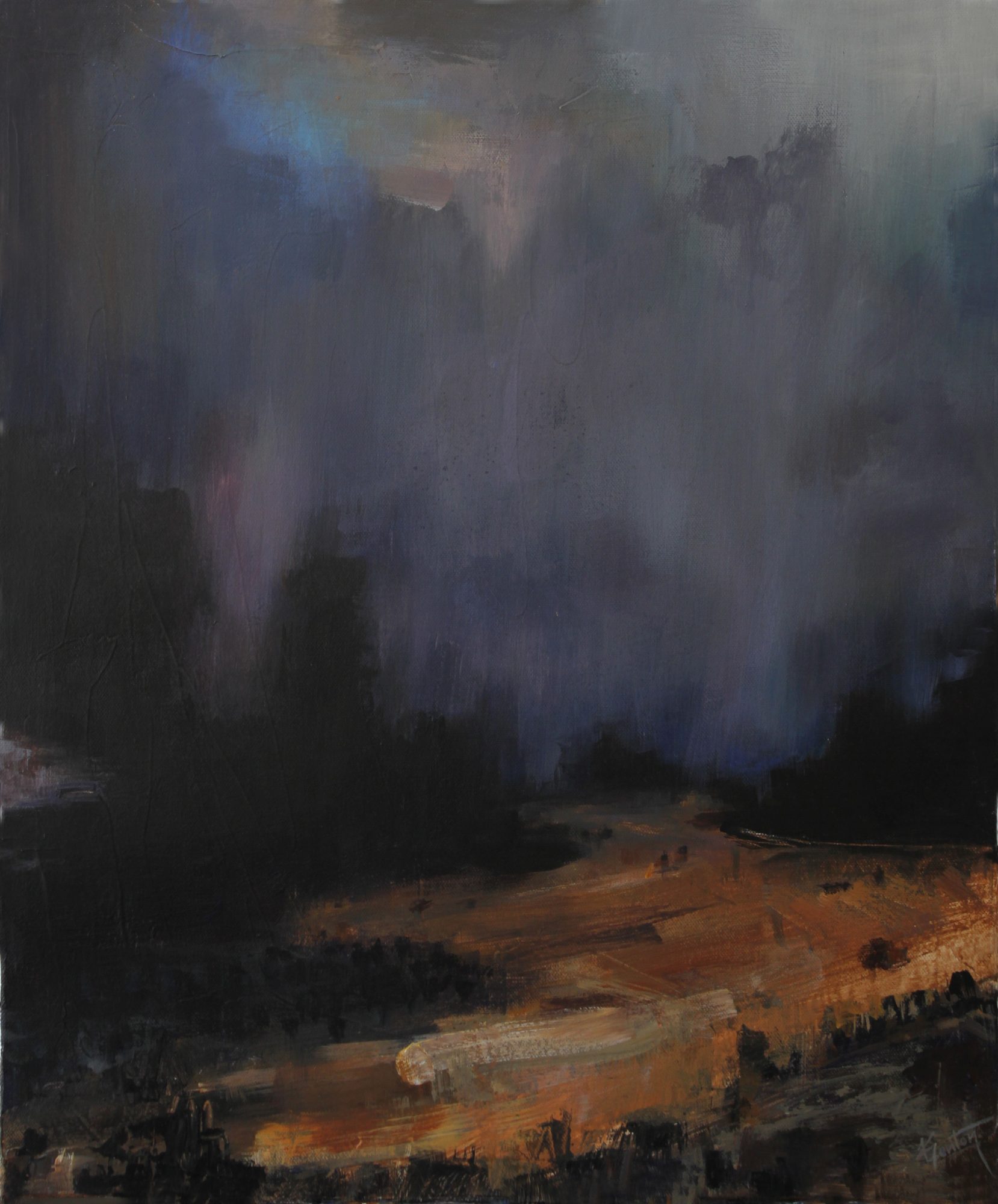 Like the detail in the landscape now erased it posed an abstracted visual of only a few sombre tones which I have capitalised on in the abstract painting.