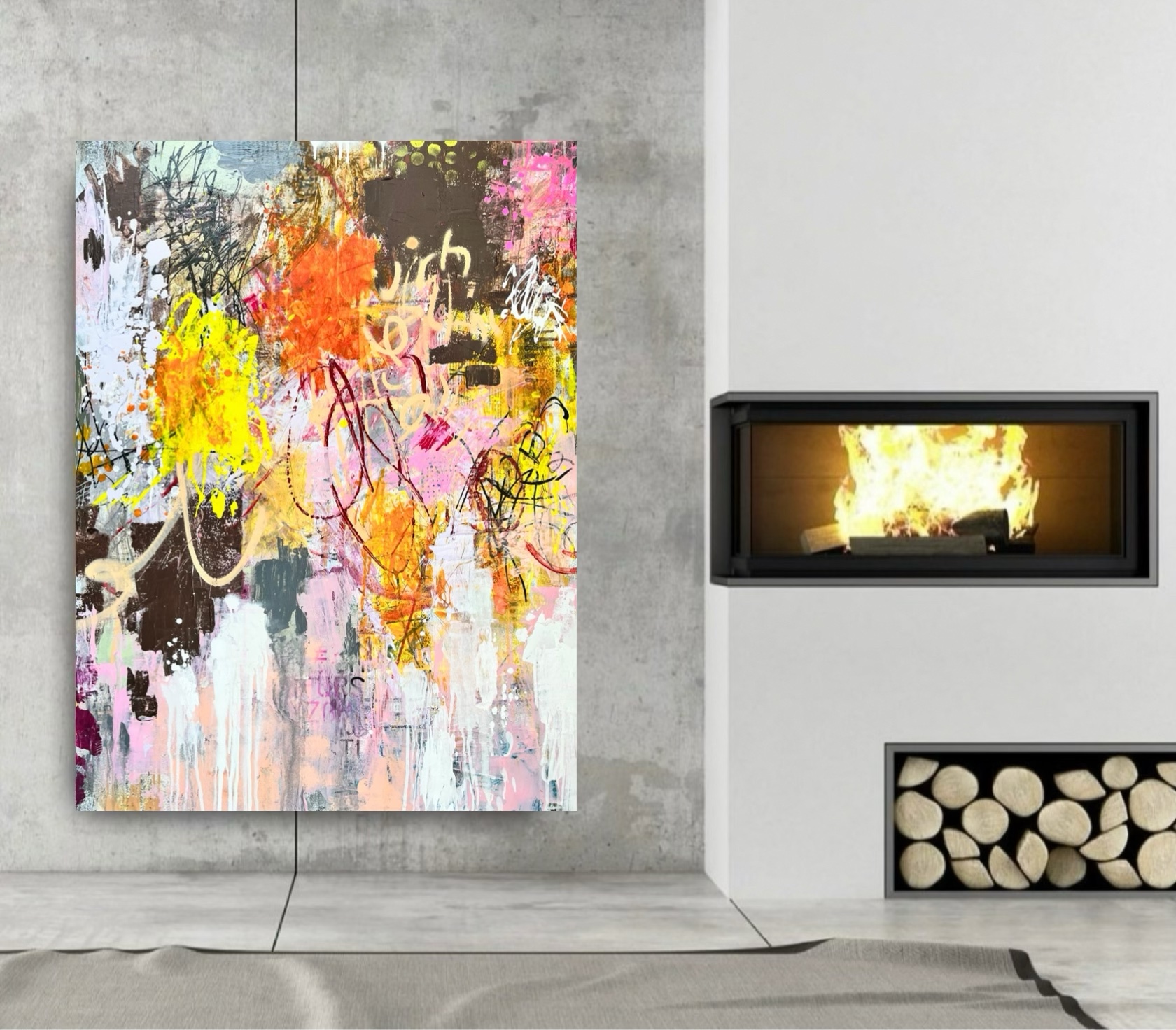 My art is directly influenced by Graffiti in City Laneways, Vintage Billboards and other weathered surfaces & is also inspired by my love of gestural abstraction and my obsession with using spray paint.