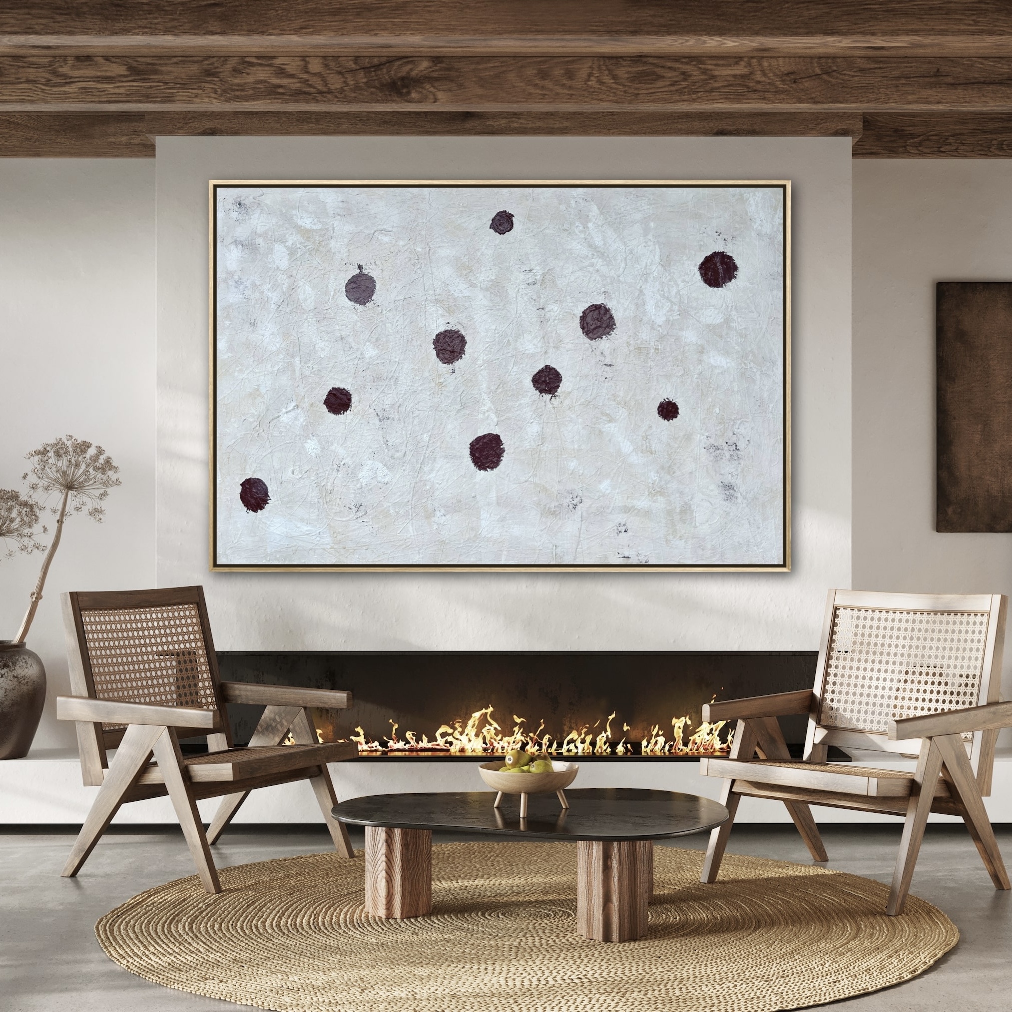 This painting is about rest, contemplation, being present in the moment and finding happiness in the little things. Less is more. The colour and texture is inspired by pottery. The painting is very heavily textured.