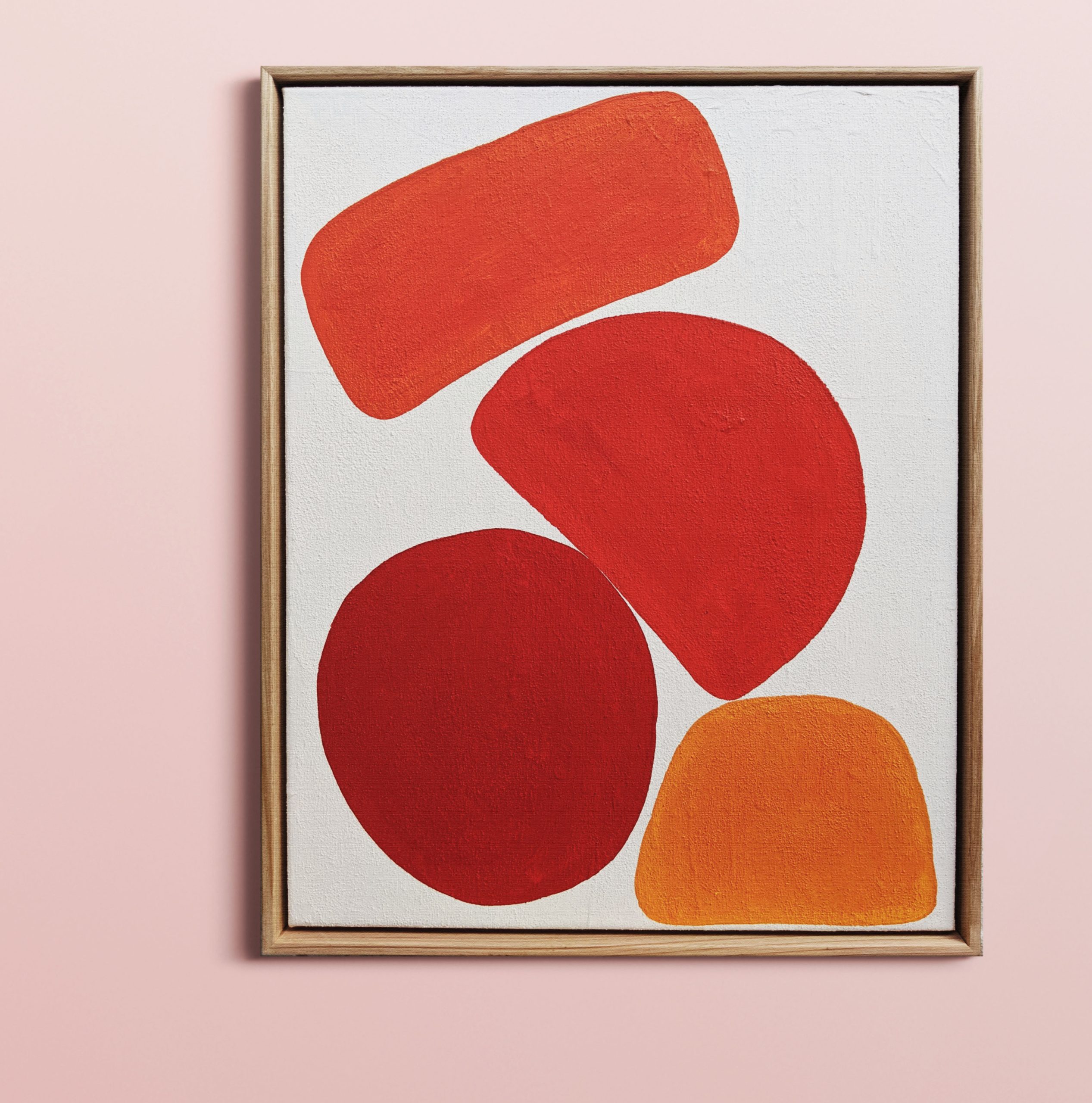 Balance No.2 by Ellen McKenna – Returning to a more minimalistic style for this series of Balance paintings, Balance No.2 is painted with vibrant orange and red / orange. The background of Balance No.2 also features a textured background which you can see in the detail photos.